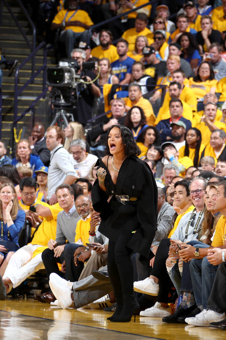 I don’t know if Rihanna will be there tonight. But I do know that everyone wants her to be. Everyone isn’t just people. It’s the game itself and definitely the league. As Justin Tinsley notes at The Undefeated, courstide has become the red carpet, Rihanna is the heir there to Spike Lee, and what makes courtside at basketball different from courtside (or ringside or rinkside) anywhere else is that the celebrity becomes part of the actual energy of the game.