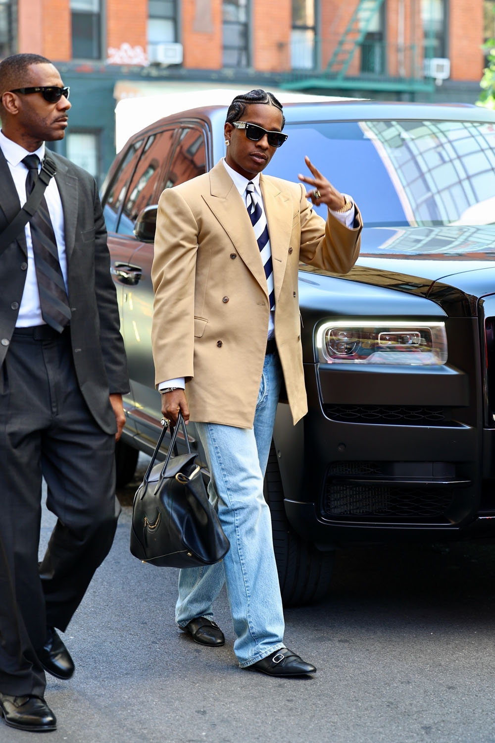 Spike Lee’s Highest 2 Lowest, starring Denzel Washington and Jeffrey Wright, opens in theatres this Friday before streaming on Apple TV+. The cast is doing some press right now ahead of the theatrical release and there will also be a red carpet premiere in New York. This, presumably, is why Rocky is in town right now. I mean, yes, of course NYC is home for Rocky but lately he and Rihanna have been in LA and she was last papped in LA on Thursday. As we all know, she’s pregnant with their third child, and since their two sons were born in LA, chances are their sibling will be too.