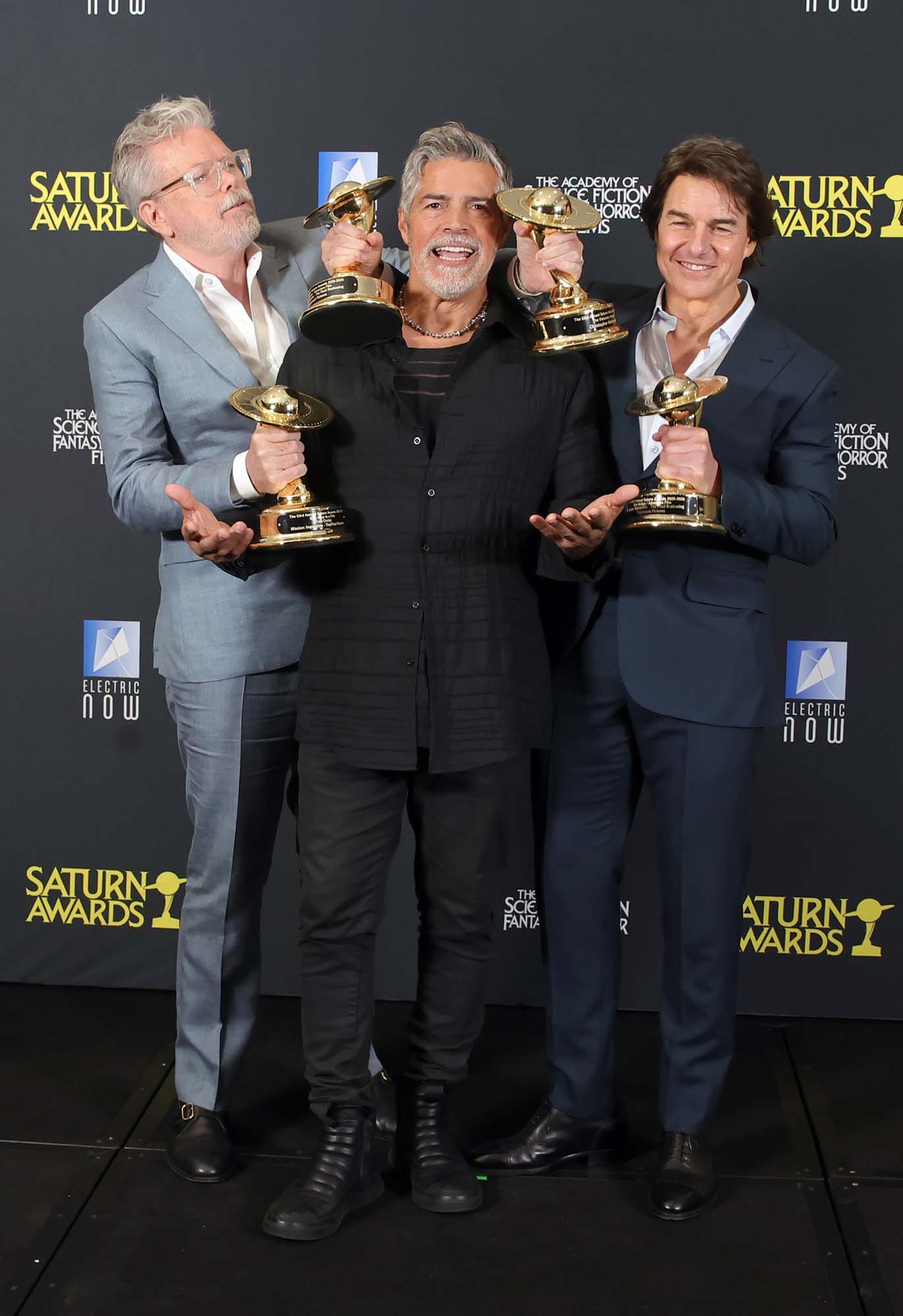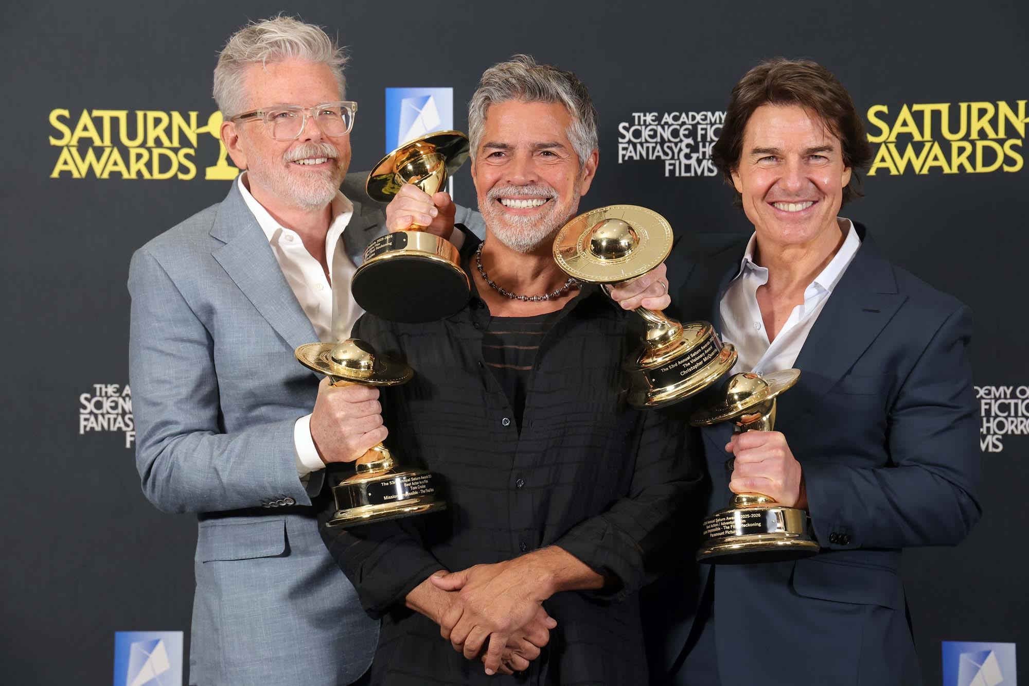 Tom Cruise, Esai Morales, and Christopher McQuarrie at the 53rd annual Saturn Awards, March 08, 2026 in Universal City, California
