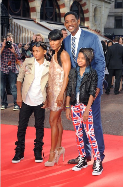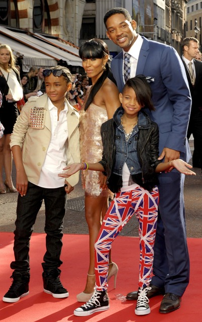 For The Karate Kid premiere. Goddamn that’s a ridiculously attractive family. But is there something new about Jada’s face? Does it seem extra tight to you? Maybe it’s just the fringe. See now if I were Willow’s age I’d be in those pants too.