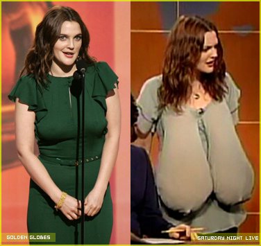 If you haven"t seen Drew Barrymore"s answer to all the breast criticism from the Golden Globes last week - check out the clip from Just Jared. She is impossibly sweet. And like I said several days ago, where many of you saw dreary, I only saw delicious. As for whether or not - as you"ve asked in your emails - she"s pregnant, I have no idea. I assume the suggestion is out there because of the size of her jubs and also because of the observation that appeared in Liz Smith"s column last week about Drew crying at the drop of a hat these days. However (and this is not to say that she"s NOT with mini-Fab because she very well could be) the girl has always had enormous tits, and given the fact that she dropped a ton of weight a while ago and seems to have filled out nicely again these days, it"s not entirely out of the ordinary that her boobs took on some added padding as well. And to my knowledge, Drew has always been a weepy sort, like my best friend Erin - who cries even when she gets those sappy ass chain emails about "living each day to the fullest" and "dancing like there"s no one watching." Anyway, I"ll keep digging on this one and as always, when I know, so will you.