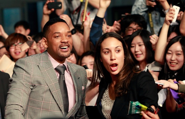Will Smith and the Men In Black 3 team were in Asia earlier this week to promote the movie. Does he seem really, really animated to you? I mean he’s always super-animated but I feel like this time there’s some extra to his natural all day party. And no, that’s not a reference to anything smutty. I do actually believe Will gets high on Fans! and Fun! He’s reminding me a lot lately of Tom Cruise. Like a constant double thumb pump, you know? High fives all the time!