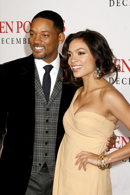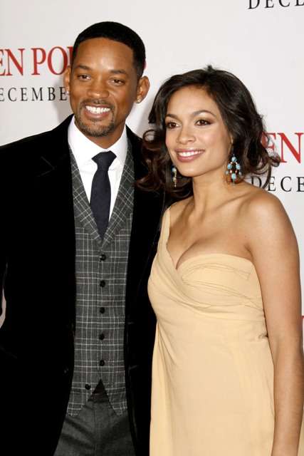 Rosario plays Will’s love interest in the film. She says he put off and putt off their love scenes until the last possible moment, that he was too shy, or too much of a gentleman, or whatever…for whatever reason he did not want to make out. So much so that Jada had to, like, push him out the door to go fondle another woman. Then she kept talking about it to the press – go on honey, go show ‘em what’s mine underneath there, go show the world how you keep me happy…
