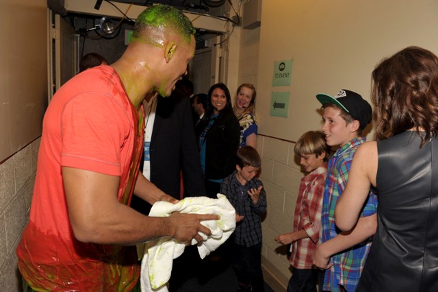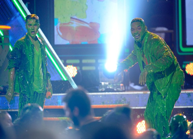 Will Smith hosted the Kids’ Choice Awards on Saturday. He was slimed with Justin Bieber. Then backstage, check him out with the Beckham kids... and is that Posh? Not wanting to show her face on camera?