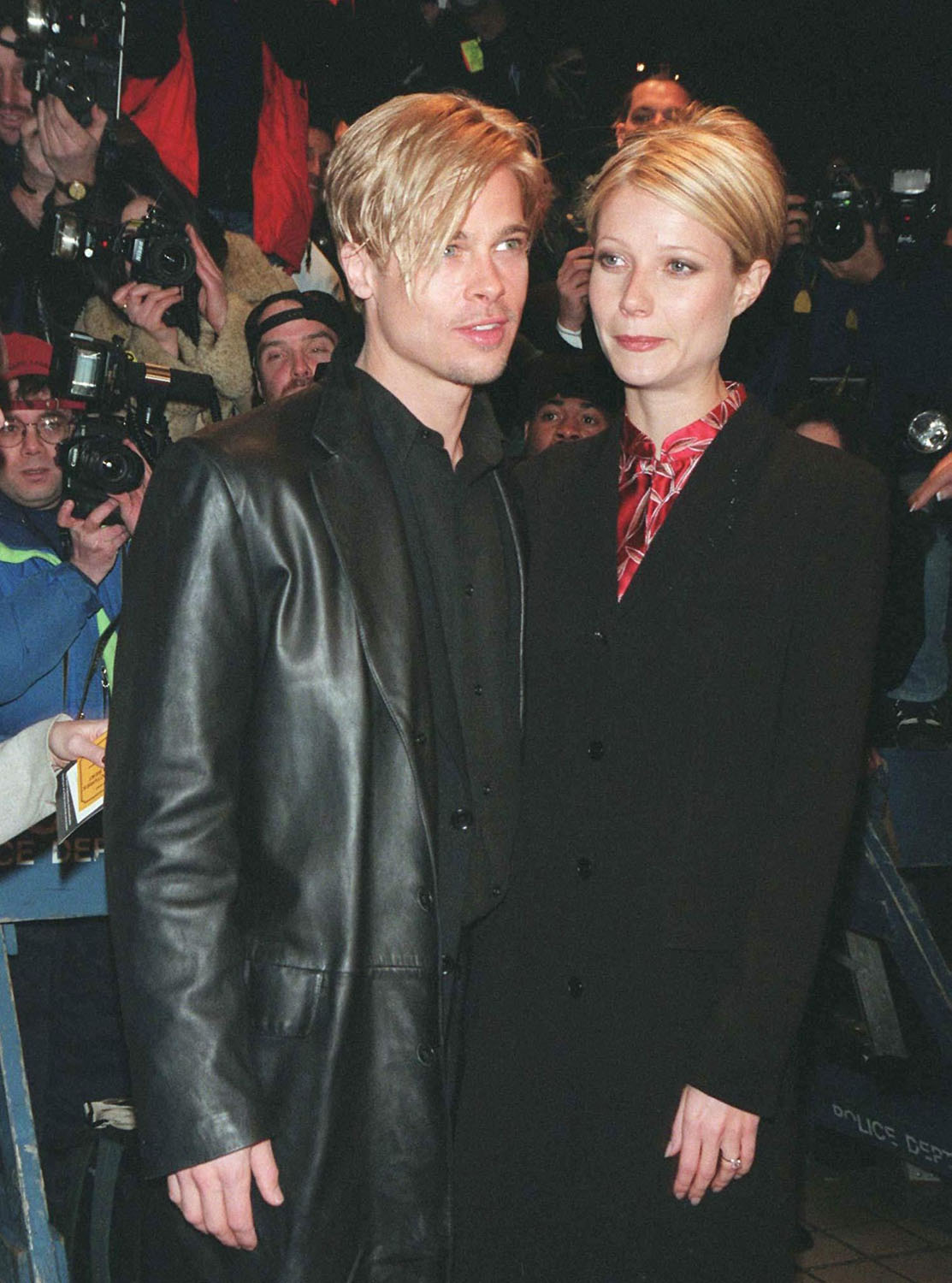 Anyyyyyway, back to Gwyneth, and why I’m telling you all this. Because if she was put off by the fact that Brad Pitt didn’t know the difference between beluga and osetra caviar, do you think she would have been judgy about her engagement ring? Here they are in 1997 with their matching haircuts and she’s wearing the ring. Gold band, square cut.
