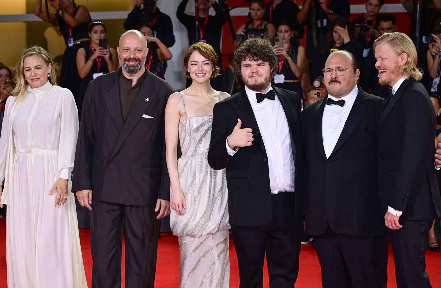 Bugonia is the big gala tonight in Venice as Yorgos Lanthimos and his muse, Emma Stone, were on the red carpet, along with his other and newer muse, Jesse Plemons, for the premiere. Alicia Silverstone is also a member of the cast.