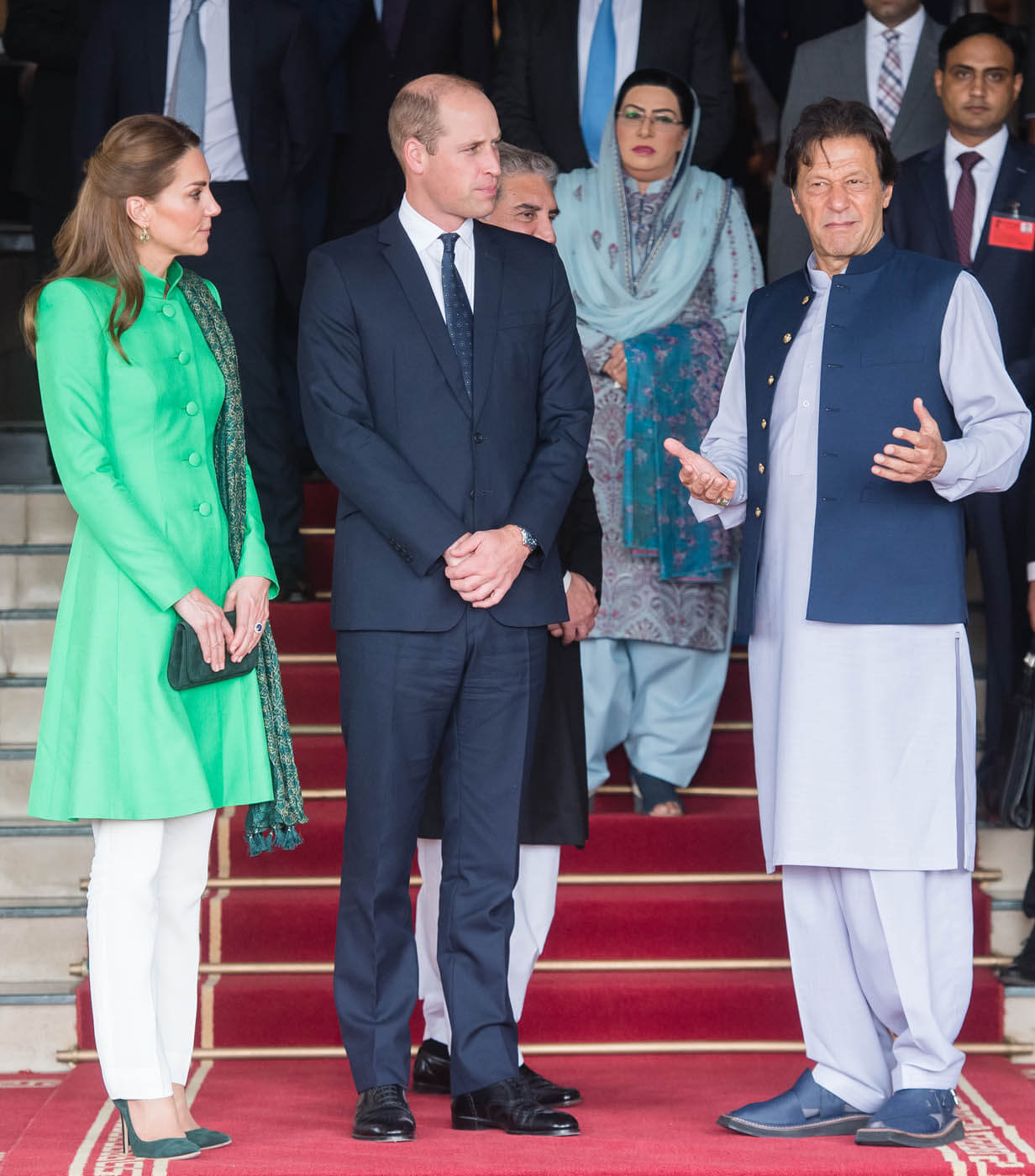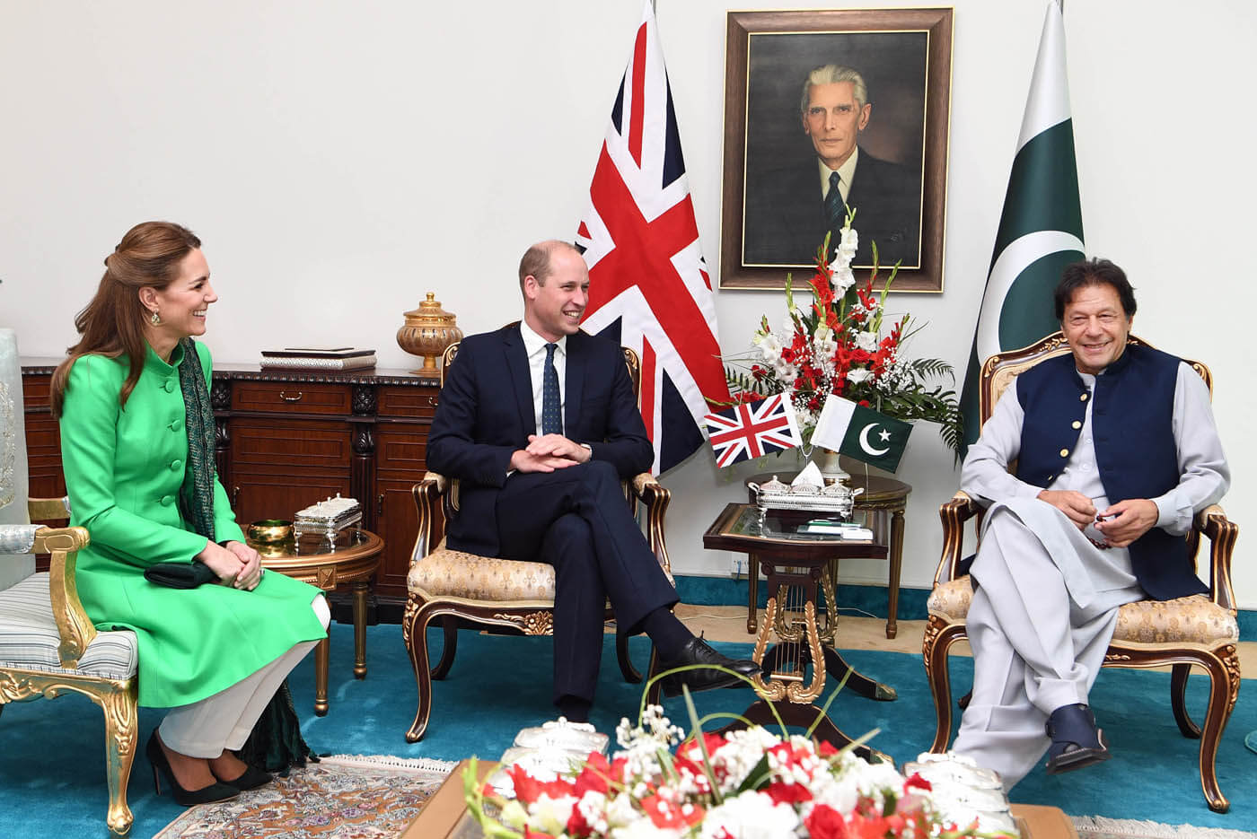 Will and Kate also met today with Prime Minister Imran Khan. William is well acquainted with the Prime Minister who spent time in England when he was married to Jemima Goldsmith. And PM Khan and Princess Diana were friends – here they are together in 1996.