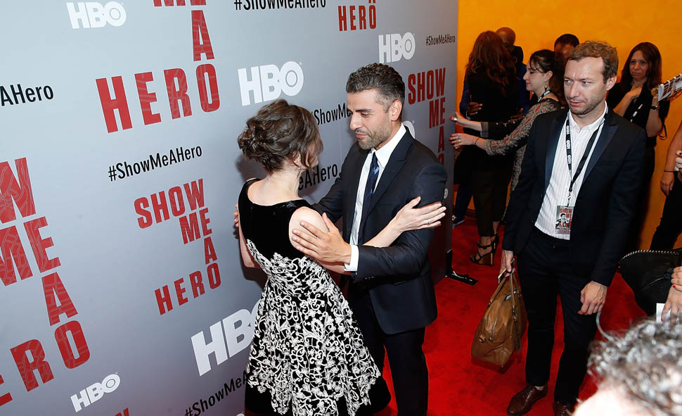 They were together yesterday to promote HBO’s Show Me A Hero, debuting this Sunday, the first two of six parts, airing over the next 3 weeks now that True Detective You Suck Season 2 is over. We wasted 8 summertime hours on that show. Wait, no, it was 9 hours because the finale was supersized. Almost 10 summer hours!