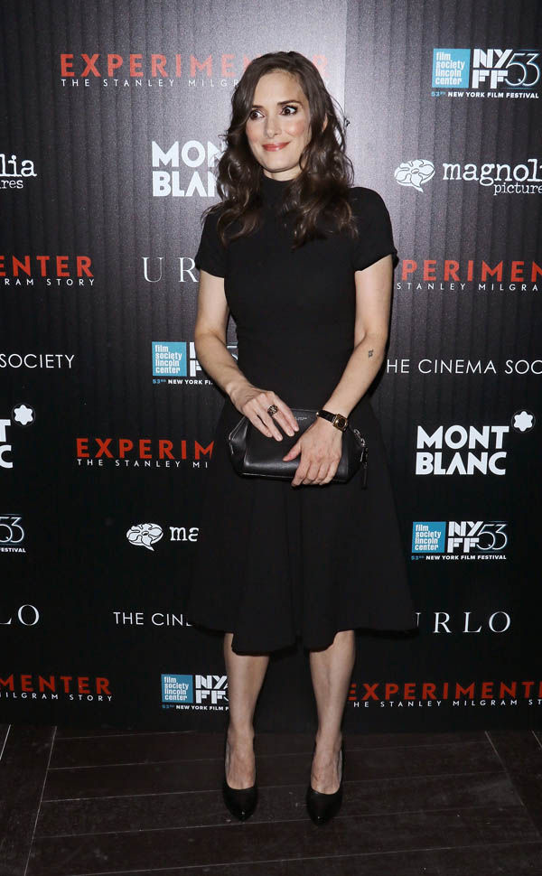 So happy to start the day with two of my favourites. First Carey Mulligan, now one of my all-timers, Winona Ryder who was at the premiere of Experimenter in New York last night. It was hard to find shots of her without those shock eyes. She seems to be opening them up extra wide in most of these pictures, and they’re already large and arresting to begin with. Always so uncomfortable in these situations, even though she’s been famous for so long. But because she’s been famous for so long, you forget that fame caught her and kept her young. And when she was young, she wasn’t Johnny Depp’s girlfriend, at one time the most famous young actress in the world, the Jennifer Lawrence/Emma Stone/Kristen Stewart of her generation.