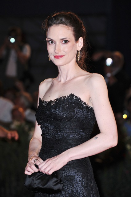 Really like how her neckline is cut. But hate the hair. I keep thinking it’s put up in a banana clip. And I live in fear for the day she wears it down. Perhaps I’m just too fixated on remembering her with it short. Stop. I am not complaining. More Winona, please. More Winona, more Winona.