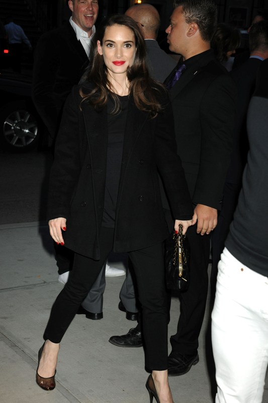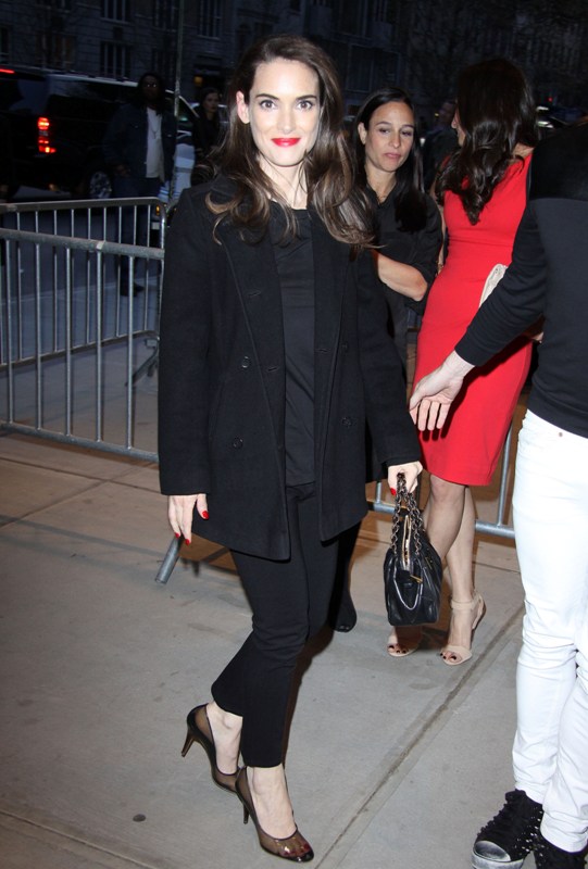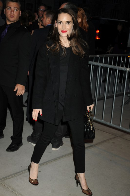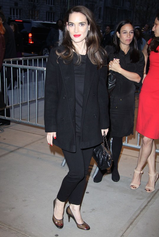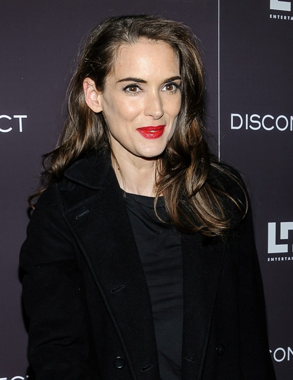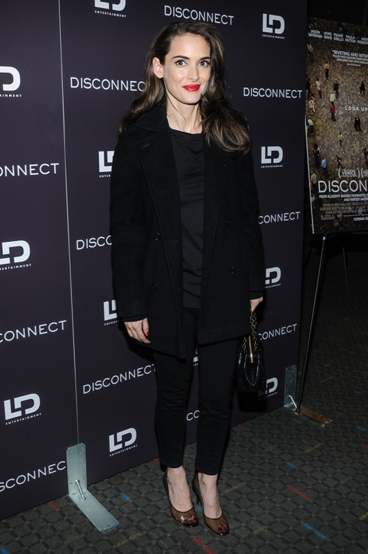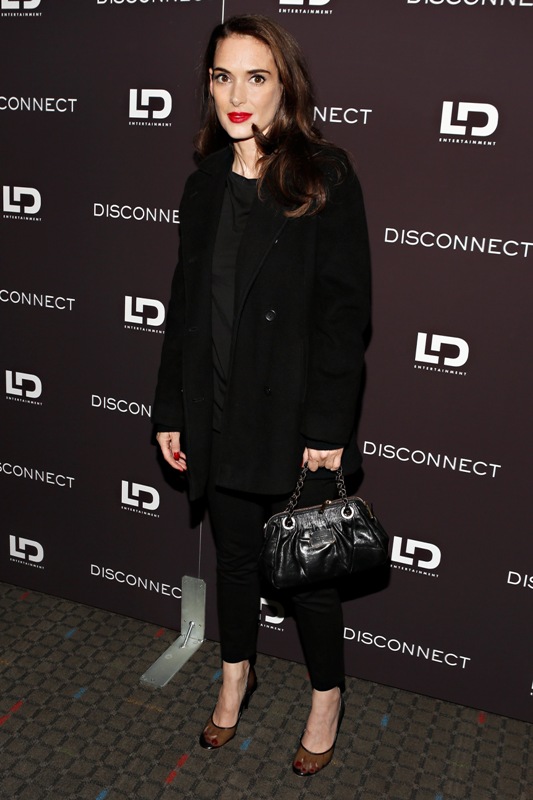 Here’s a very present Winona Ryder last night in New York for the premiere of Disconnect. God, those eyes. Those eyes. Are clear and wide and as beguiling as they’ve ever been. And, strangely, for some reason, she reminds me here, a little, of the Jolie. Angles, skin tone, lips, something?