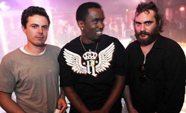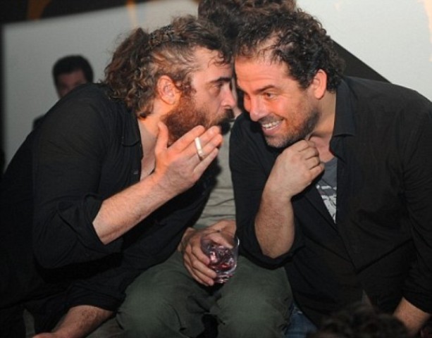 He’s apparently pursuing a recording career to be documented by good friend Casey Affleck. Casey was with him last night – they seem to be inseparable lately. Only Casey hasn’t lost his f-cking mind, doesn’t look a mess, and will be returning to work in front of the camera come January which means he won’t be around so much to babysit. Hopefully by then Joaquin’ll have his sh-t together.