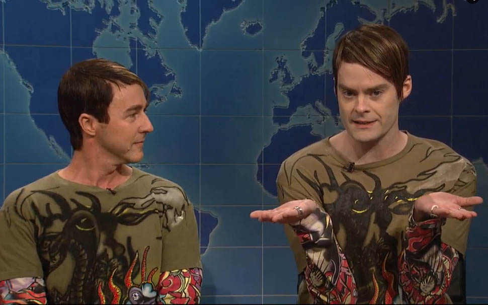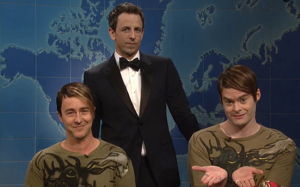 During the “Weekend Update” bit several actors appeared as famous SNL characters. Emma Stone impersonated Gilda Radner’s “Roseanne Roseannadanna”, Melissa McCarthy attempted to take on Chris Farley and “Matt Foley”, and Edward Norton almost got there with “Stefon” and Bill Hader. None of this really worked. Norton/”Stefon” was the best of the worst because Hader himself butted in as the real “Stefon” to correct the impression, but on the whole, this bit just proved that truly great comedians cannot be replaced or replicated. This also goes for the Blues Brothers revival which no one ever asks for or wants to see—without John Belushi, there is no bit.