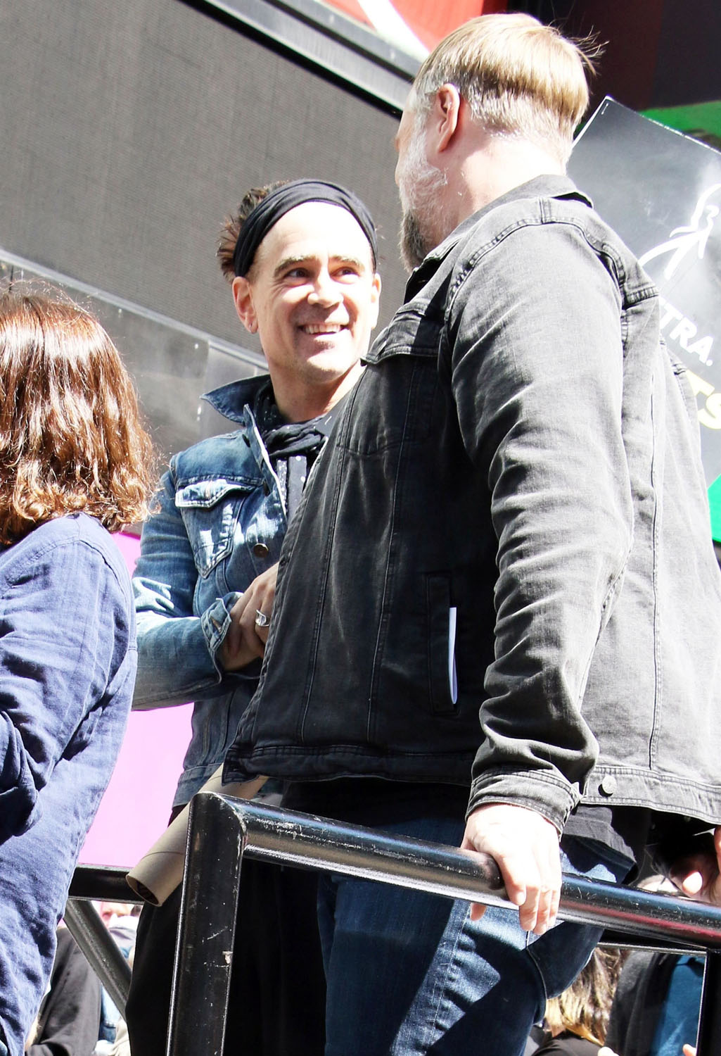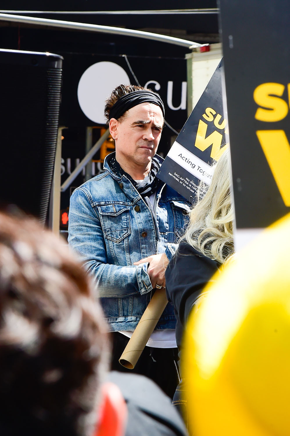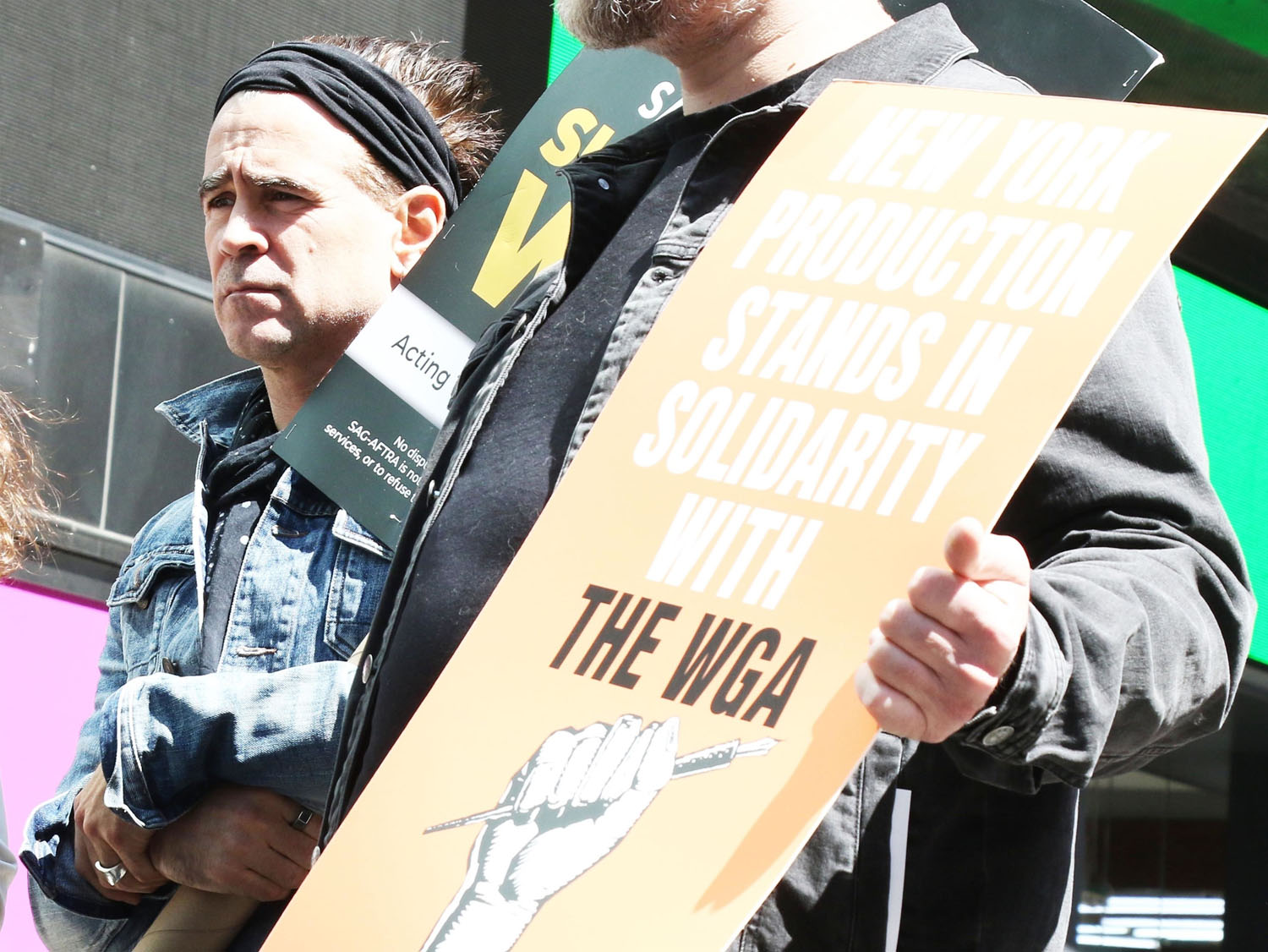 And collaboration is the theme today, since Colin Farrell turned up at a picket line in New York yesterday, showing SAG support for the WGA alongside Michael Kelly. He emphasized how vital writers are to the creative process, saying, “For twenty-five years I’ve made a living, provided for my family off the backs of the creativity of writers.”