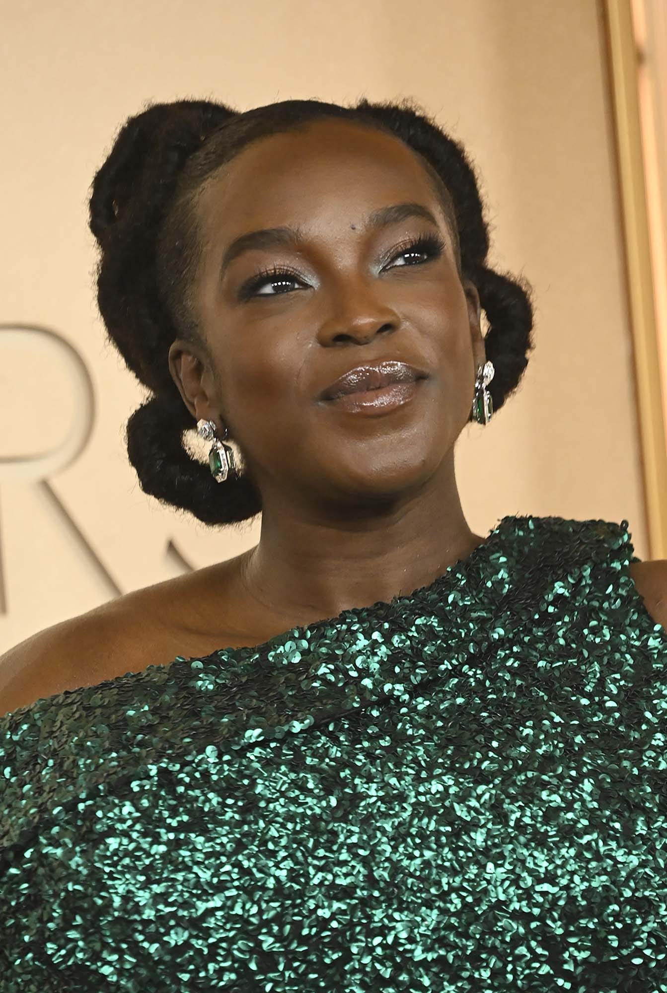 Wunmi Mosaku has been playing with colour all season long, in her gowns and in makeup – but this green Louis Vuitton hand-embroidered gown is easily on another level.
