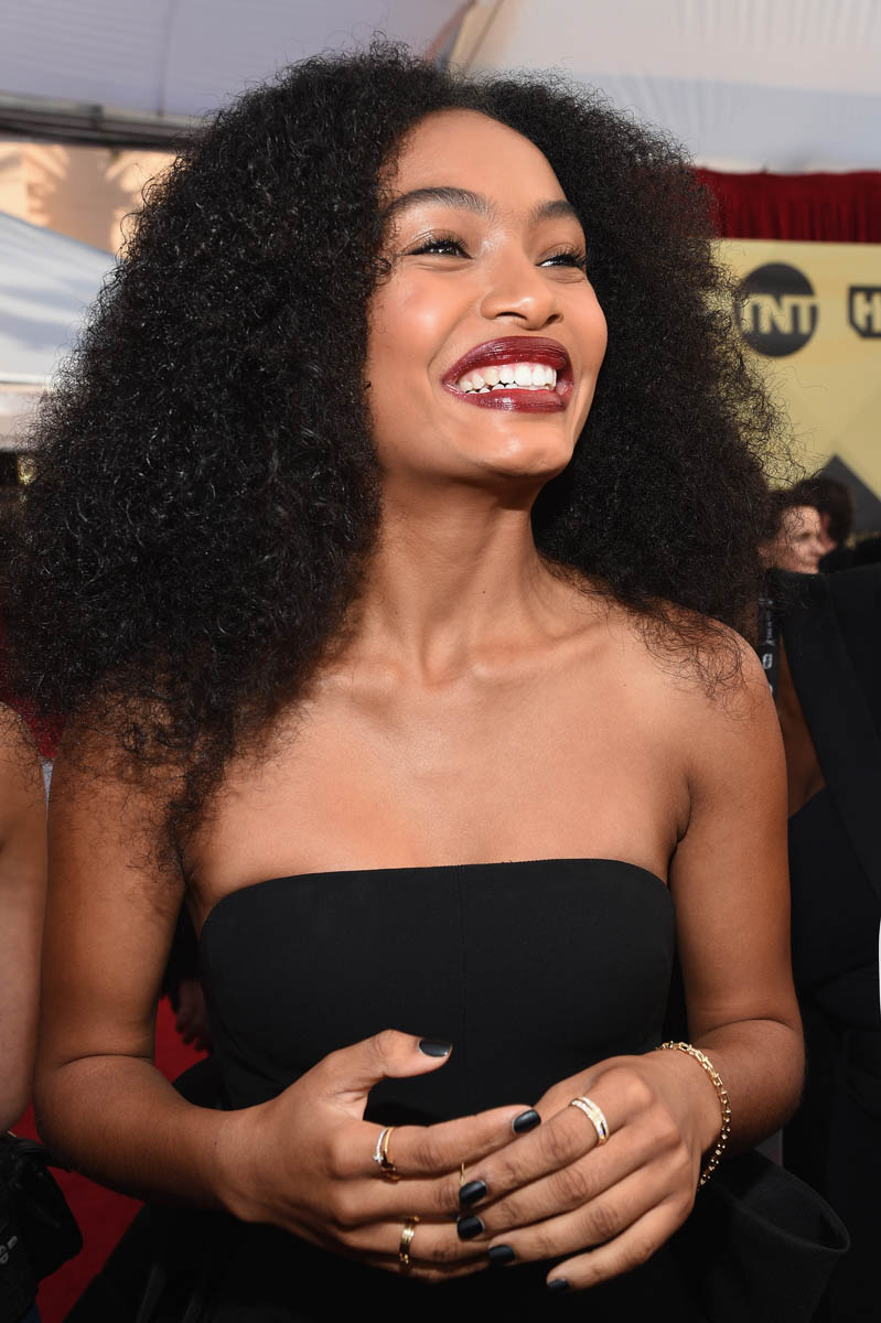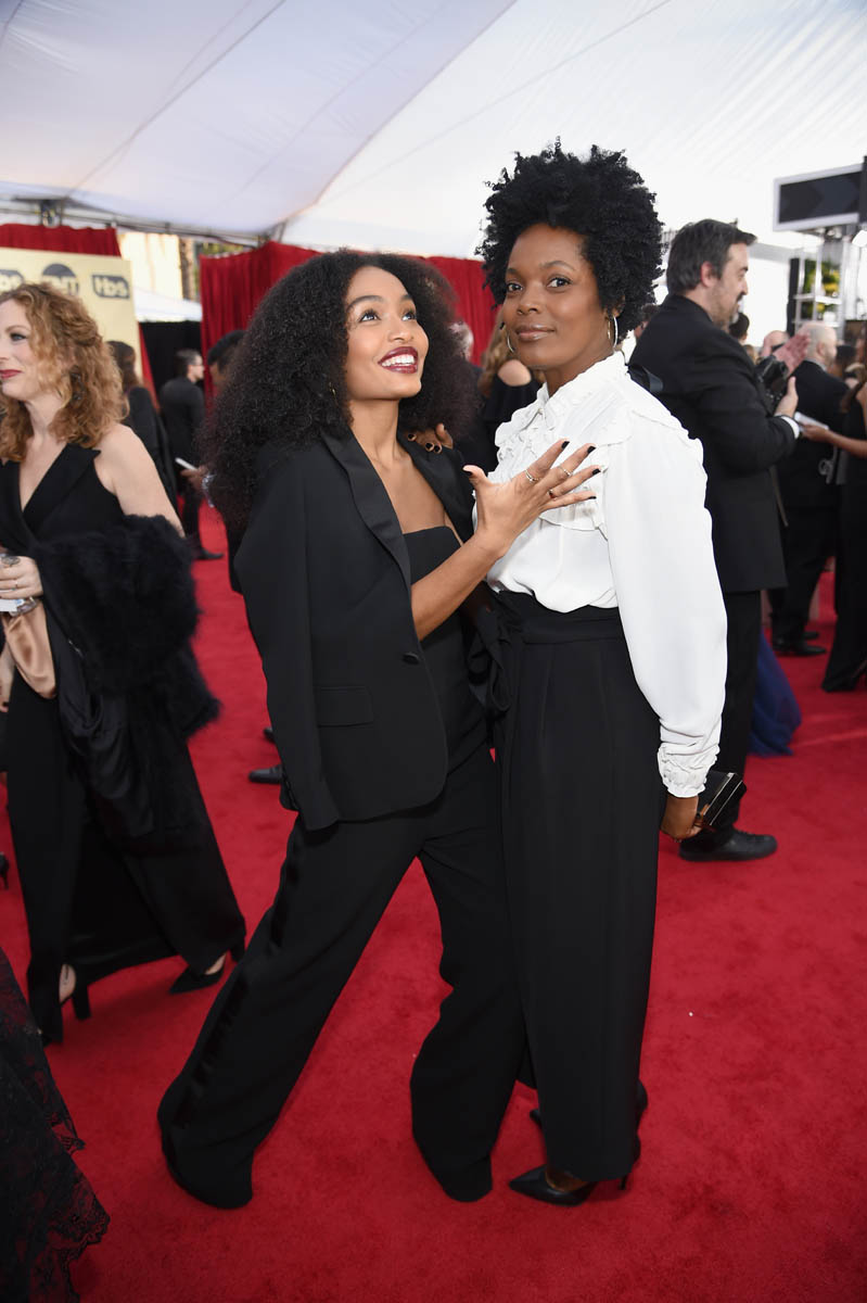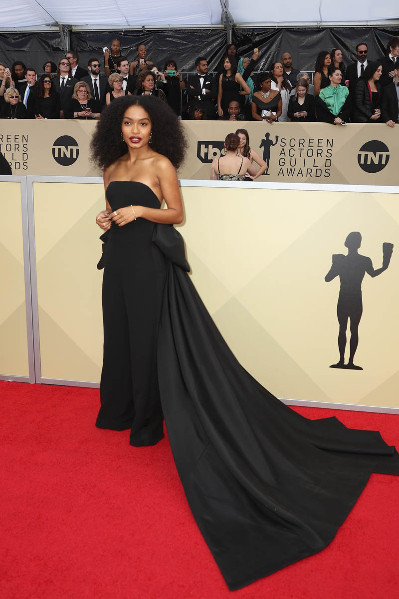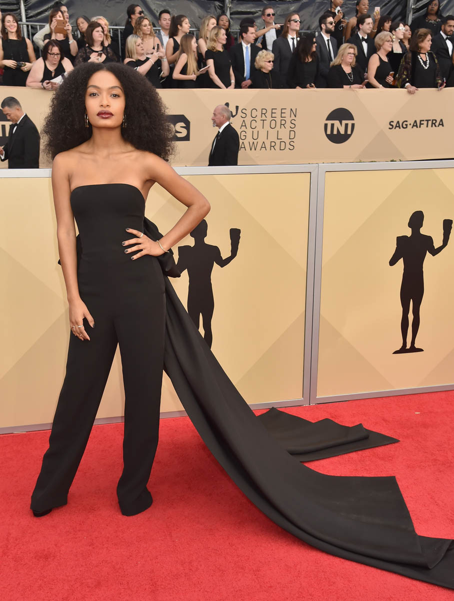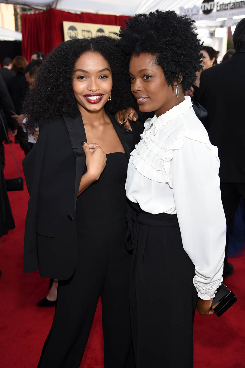Last week it was confirmed that grown-ish has already been renewed for a second season. Yara Shahidi celebrated that news by wearing the sh-t out of this black jumpsuit last night at the SAGs. Every decision about this look was the right one. The hair is drama and eliminates the need for extra accessories. That shade of red on her lips, with brown undertones, I can’t make it work but my GOD, it was made for her. And OMGGGGGG she’s coordinating with her mom, Keri. Look at her mom!