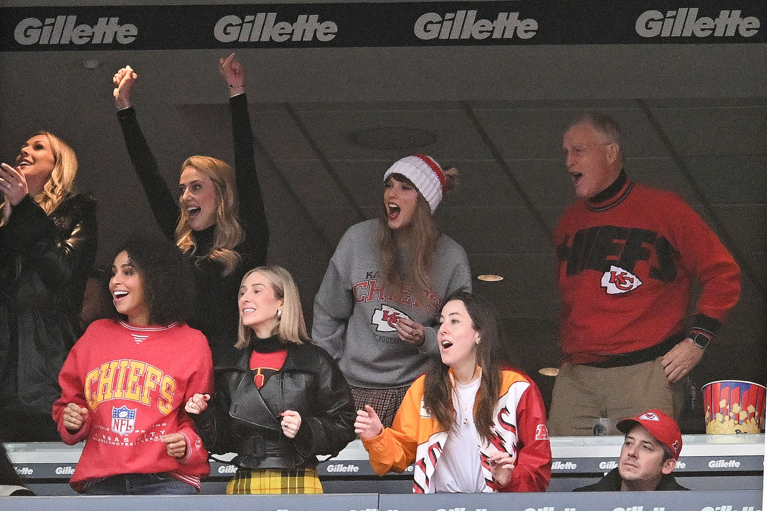 Taylor and her dad, Scott, were joined at the game by her longtime friends Ashley Avignone, Alana Haim, and Melanie Nyema. And she seemed pretty close with Brittany Mahomes…