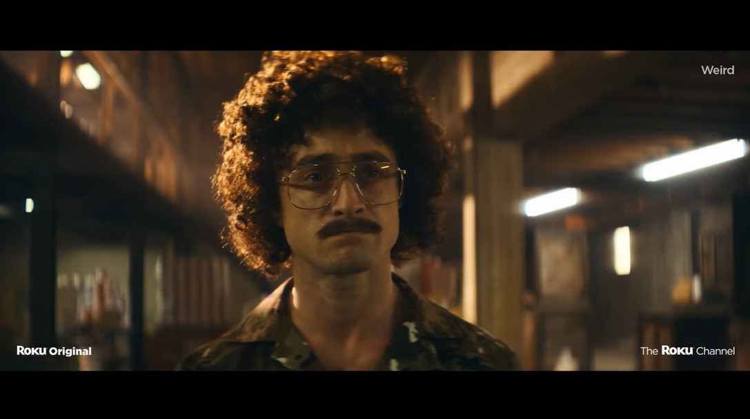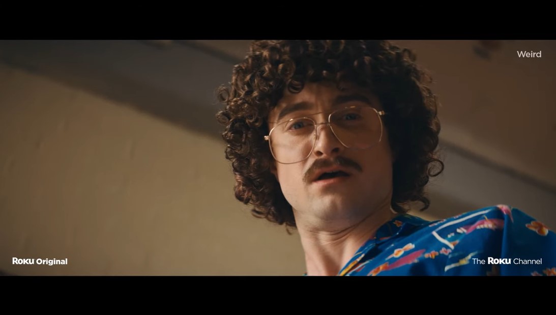 However, after the trailer was released it became clear there is a generation gap regarding Weird Al, because The Youths didn’t seem to get the joke. There was a lot of “why is this funny” going around. It’s funny because none of that sh-t happened! Al Yankovic never fought with his band or had an affair with Madonna or was hospitalized for substance abuse. He’s a square, the music nerd who hit as big as his idols by riffing on their songs. His parents supported his accordion lessons, and he’s the LAST person who would stub out a cigarette on someone’s hand. But, just like his songs lampoon chart-topping hits, his movie is lampooning all the music biopics that hit these same, familiar beats. And it’s doing it with the “out of control rockstar” sporting a series of dumb Hawaiian shirts and a cheesy moustache and going so far as being released on “The Roku Channel”, a parody of streaming services. Layers within layers of parody!