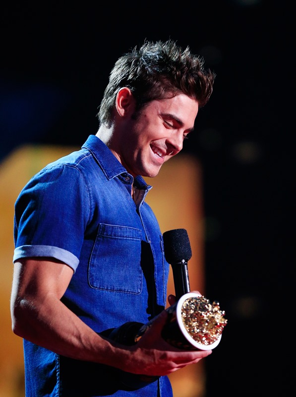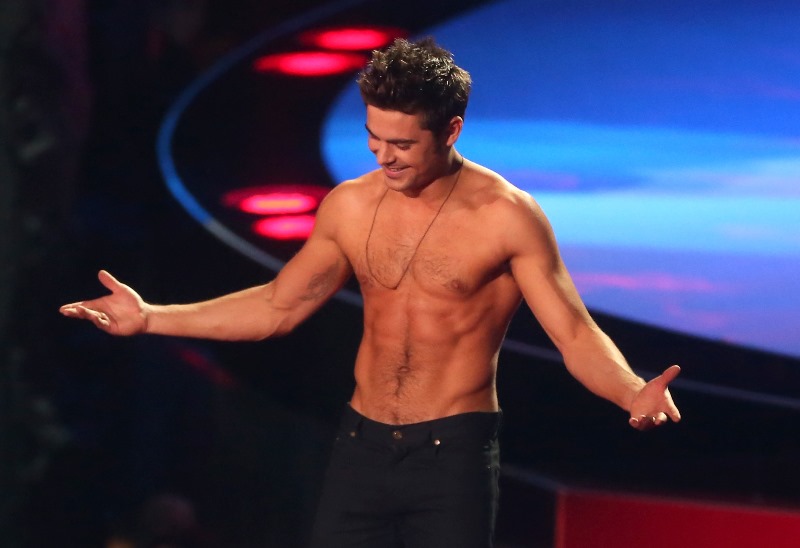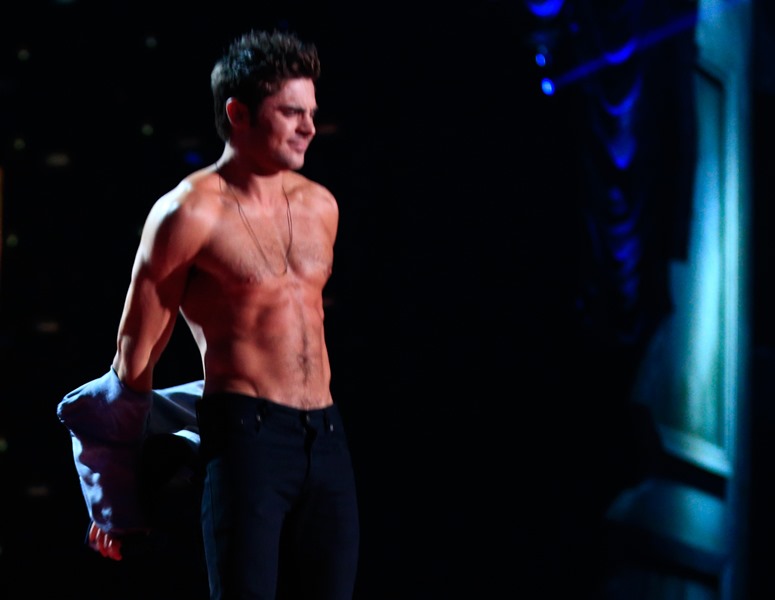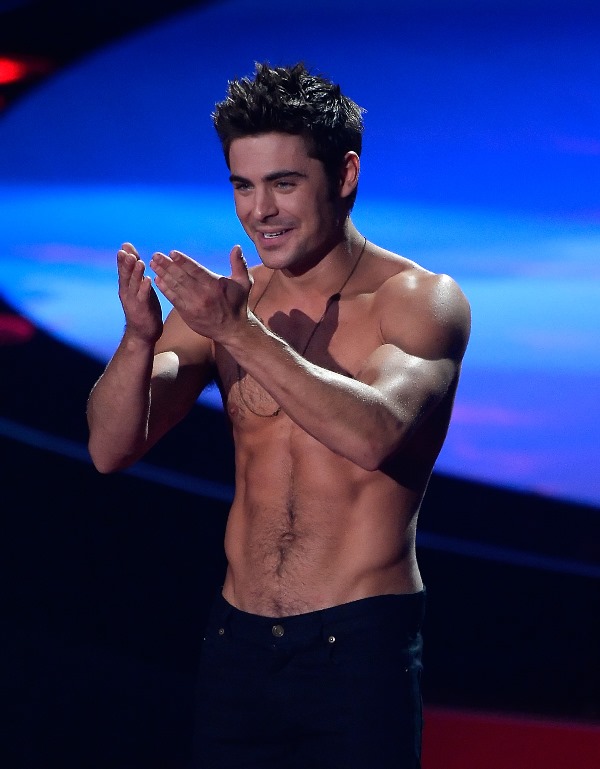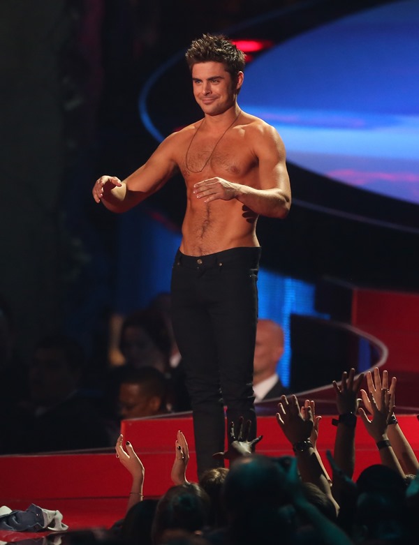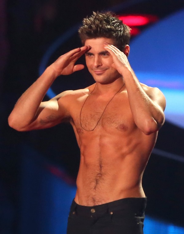 I did not feel the urge to stick my hand down my pants and start rubbing at the sight of Zac Efron shirtless last night on stage at the MTV Awards. Especially not when he started flexing and saluting. He saluted a couple of times. It was bad. It was really, really bad. At that moment I texted Sasha: I am so embarrassed for him right now. She texted back: MORTIFIED.