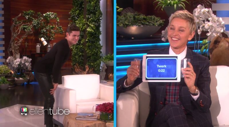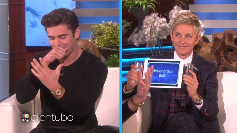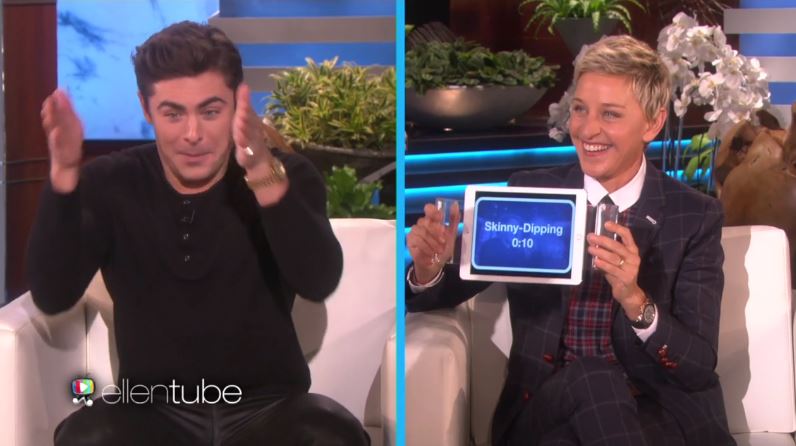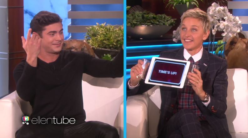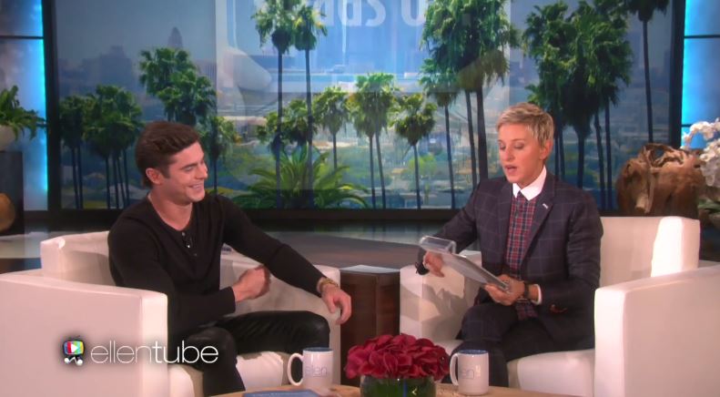 Zac is currently promoting Dirty Grandpa, his movie with Robert De Niro…because De Niro is … poor? Today he will appear on Ellen. The show has released a preview clip of him playing Heads Up with her which is pretty much an entire minute of her trying to get him to take his clothes off.