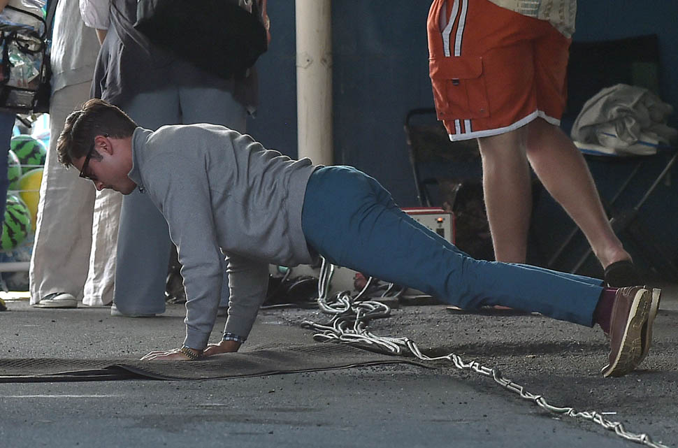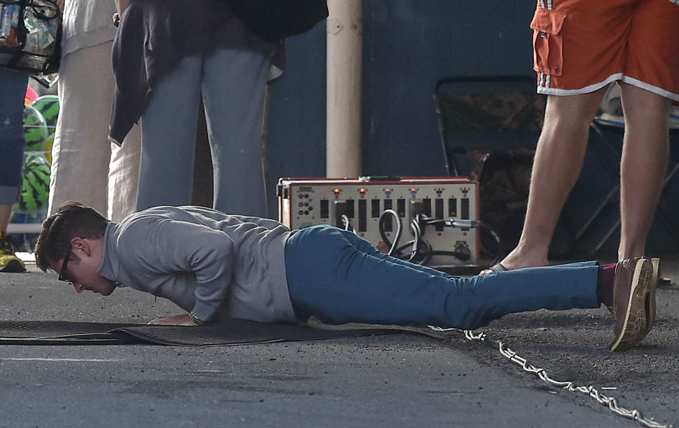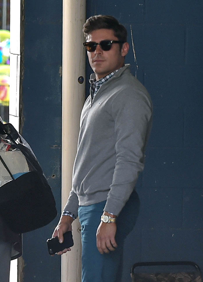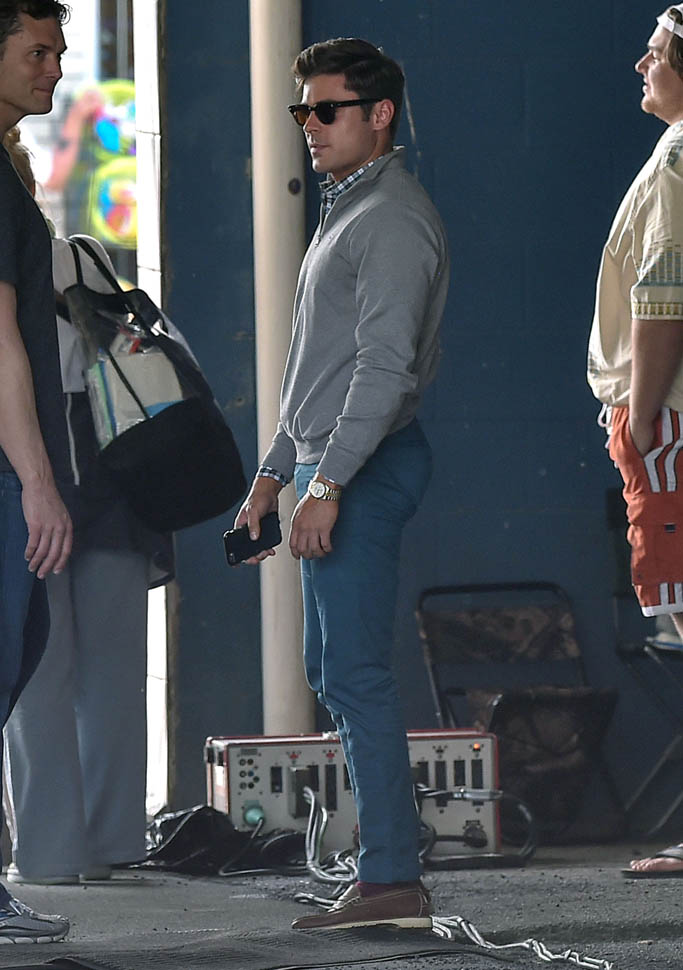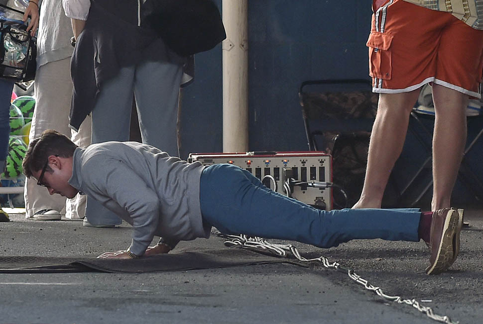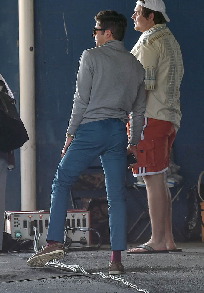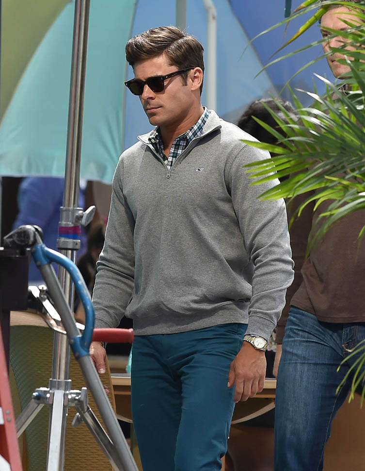Zac Efron is in Georgia working on a movie called Dirty Grandpa. He was photographed on set today. In between scenes, he appears to be dropping down for a set of push-ups. I mean, good for him, you know? Maximise every minute. It can be boring, sitting around in your trailer all day, waiting for them to set up the lights and block the shots. If he’s using his time to stay healthy, stay fit, you’d have to be a major c-nt to bitch about that. And I don’t necessarily want to bitch about it. I just want to ask you if you’ve been there. If you know someone who, for no apparent reason, like you’re all just standing around, hanging out, and suddenly s/he’s on the ground doing push-ups or squats and it takes everything you’ve got to suppress the side-eye you want to share with your best friend…