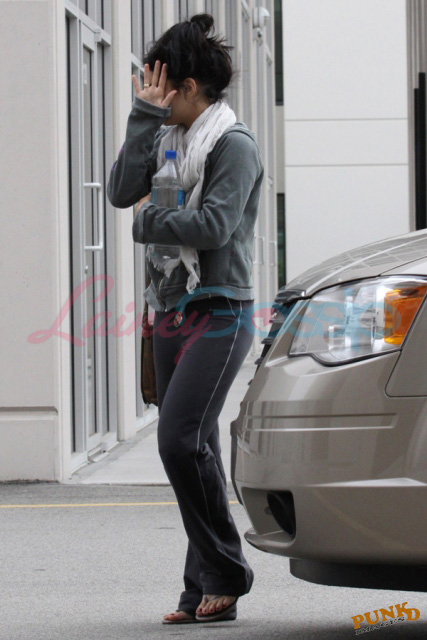 Zac’s girlfriend is also in town – she’s filming Sucker Punch. This is Vanessa Hudgens yesterday without makeup. She’s cuter without makeup.