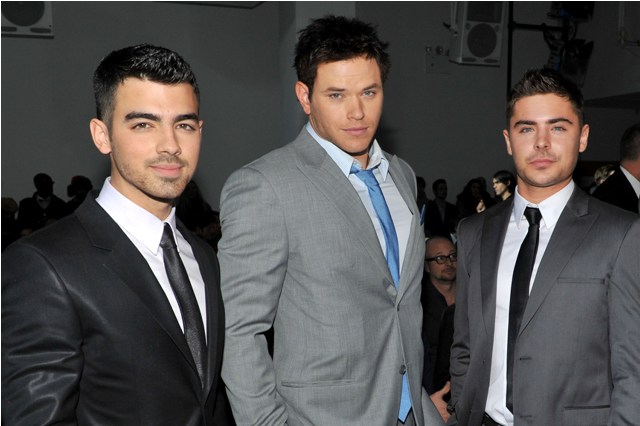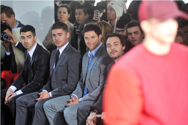 It’s Fashion Week in New York. This is the Calvin Klein show. This was apparently the best front row they could manage: Joe Jonas, Zac Efron, and Kellan Lutz. Big love to Jack Huston because of Boardwalk Empire, obviously, so we’ll exclude him from these giggles and focus instead on the chest puffing that’s happening between the other three.