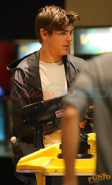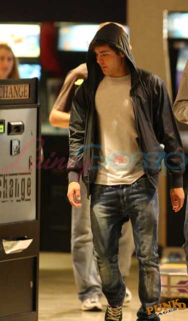 As mentioned on Monday, Zac is town to shoot The Death & Life and Charlie St Cloud. He went to the movies with a friend last night at a local cinema, waited until Bruno started and the theatre was full before slipping in 15 minutes later.