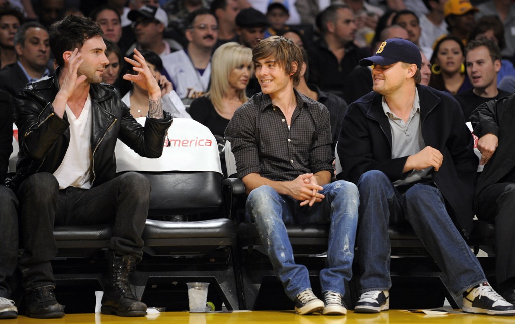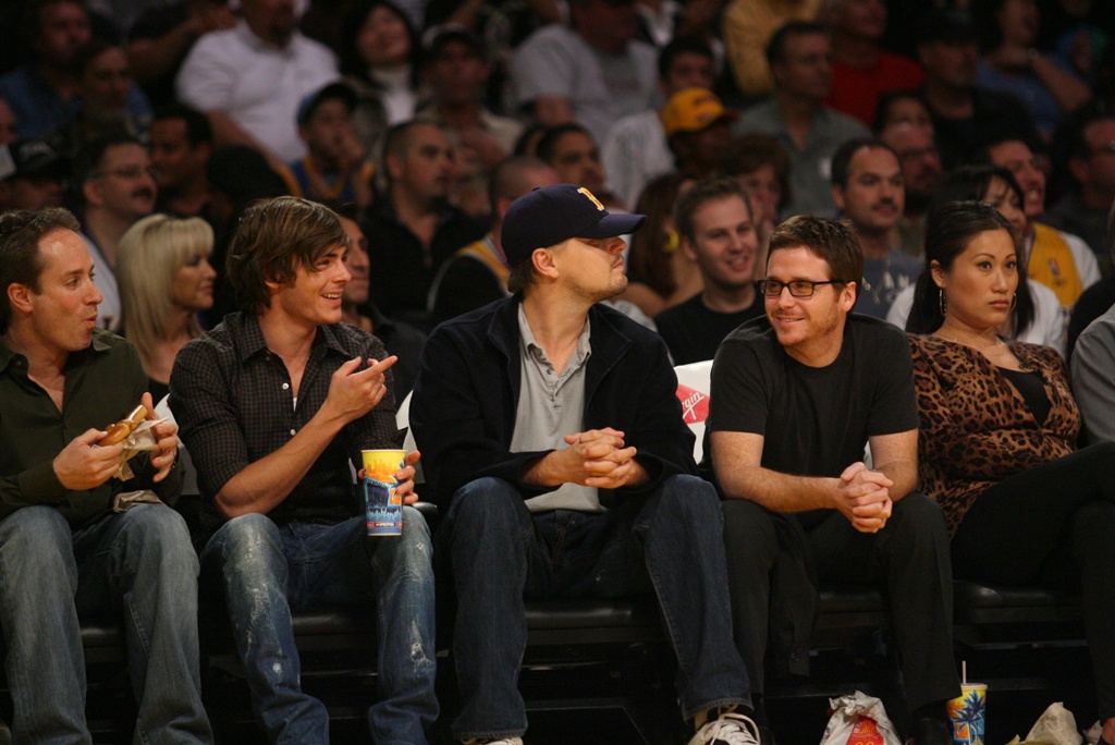 Wouldn’t you know, on Friday night, the same day Twilight hit theatres, LipGloss managed to arrange the best seat in the house at the Laker game, right next to his mentor Leonardo DiCaprio.
