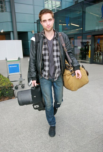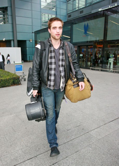 Rob went home for the holidays. To London. Here he is arriving yesterday in, yes, the same flannel shirt he’s been photographed wearing day after day for the last several days. Good. Stay there. As long as you can. Purge yourself of the Hollywood. Have sex with Sienna Miller. Or Kimberly Stewart. Or Peaches Geldof. Totally Peaches Geldof. Get some dirty London back in your British ass…