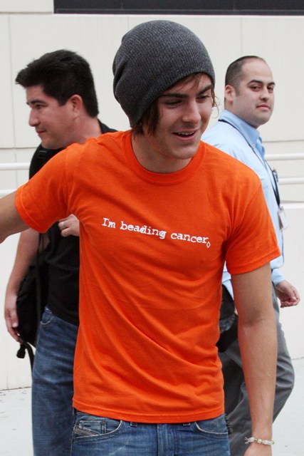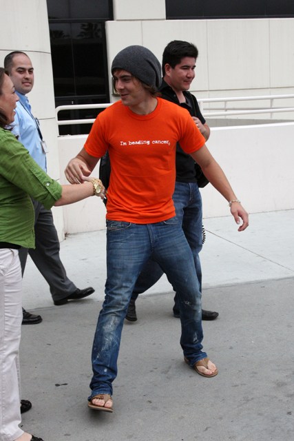 In all seriousness, twats like Lindsay Lohan should be doing more of this instead of stalking lovers. Then again, children shouldn’t be around her anyway. Very cool of Zac to take time off on a Friday to give back to others. He earned his photo opp. And I like his tee shirt.