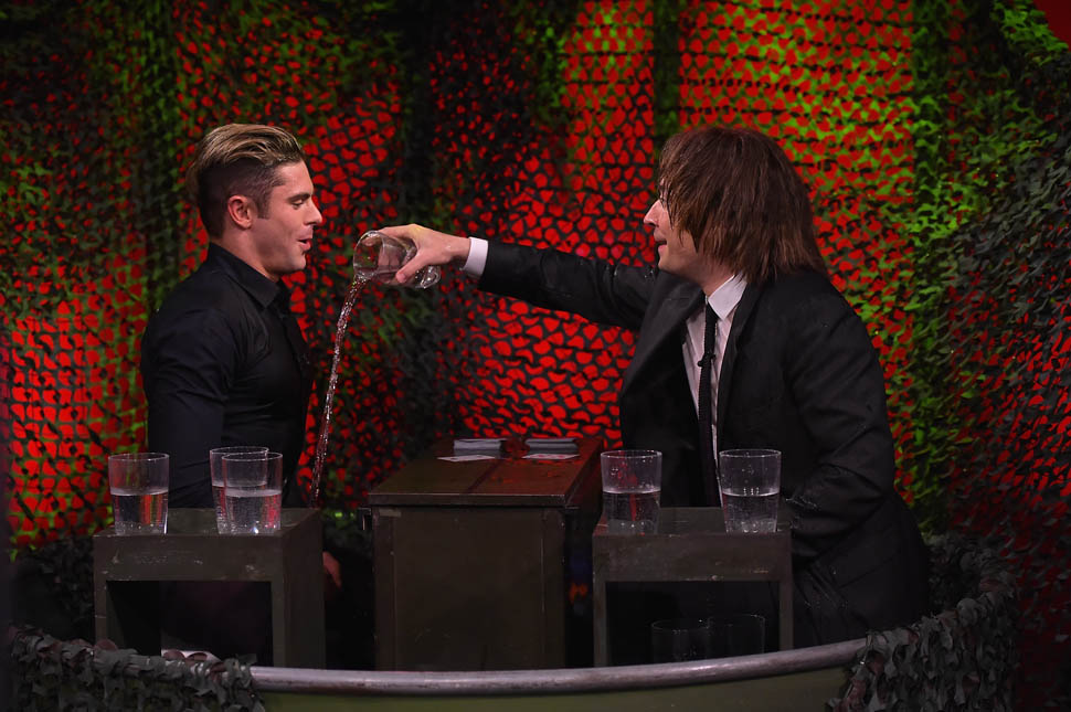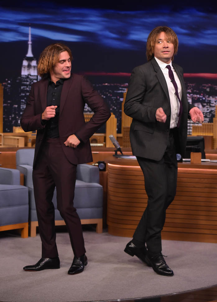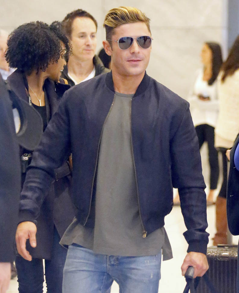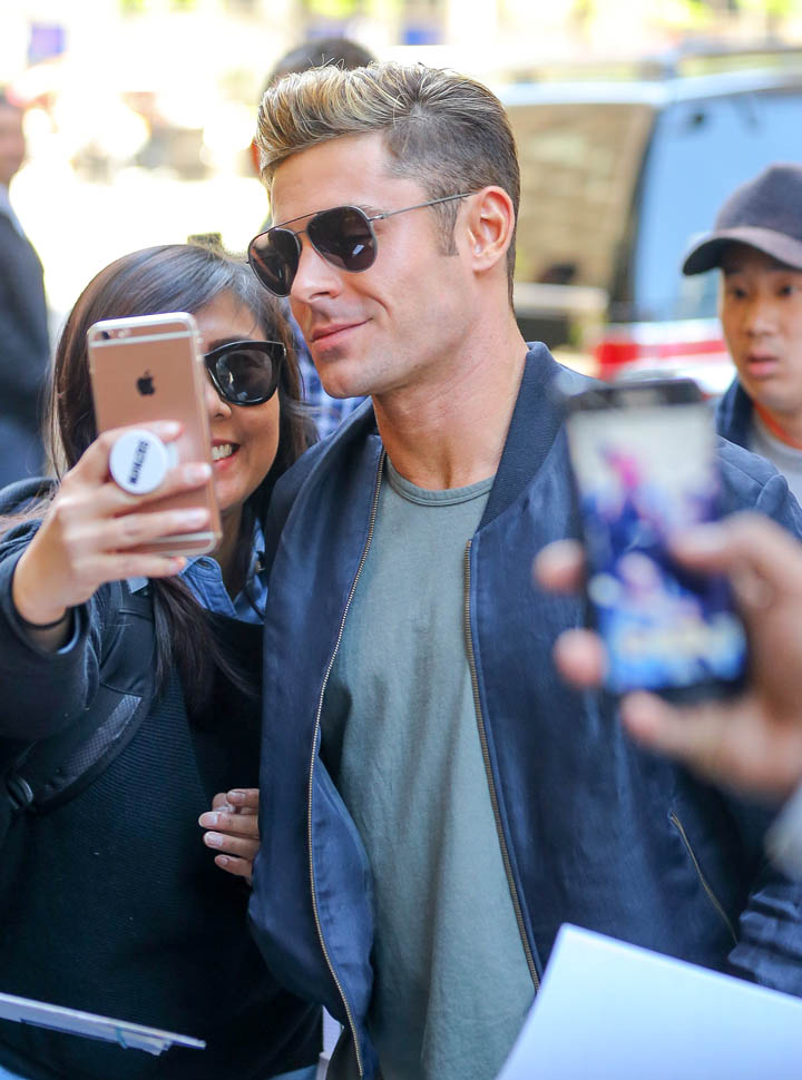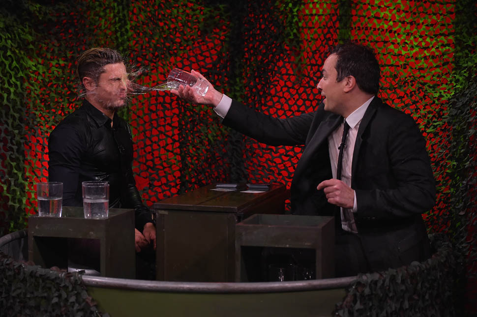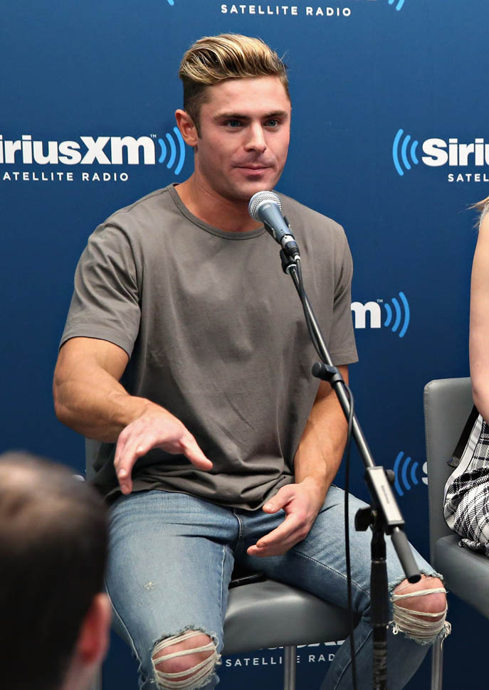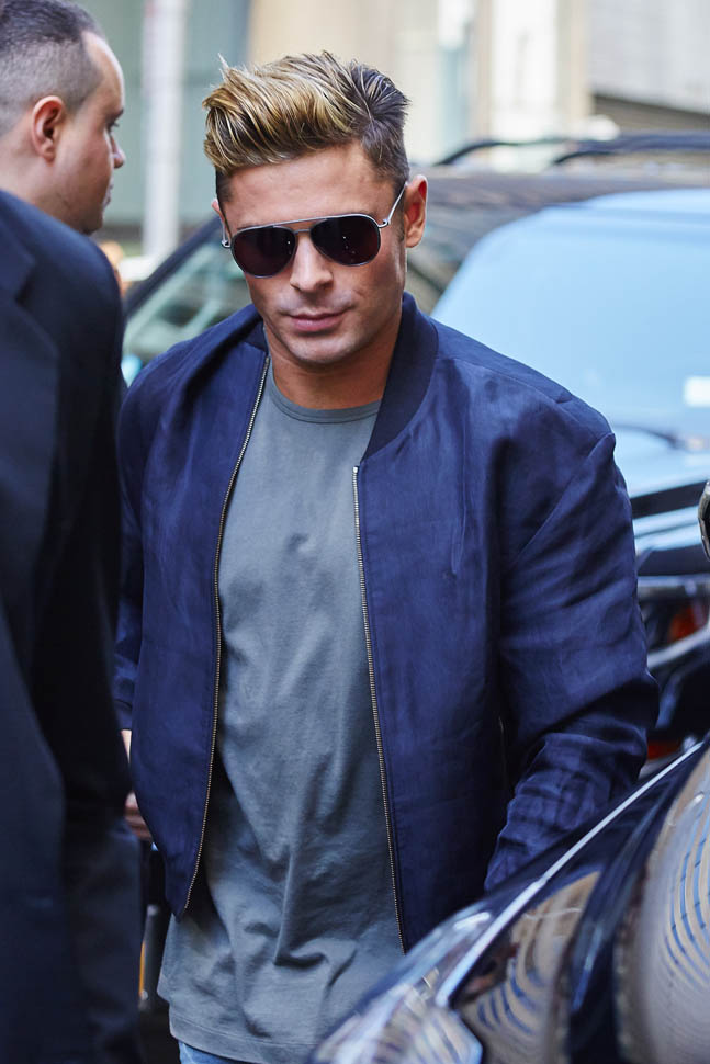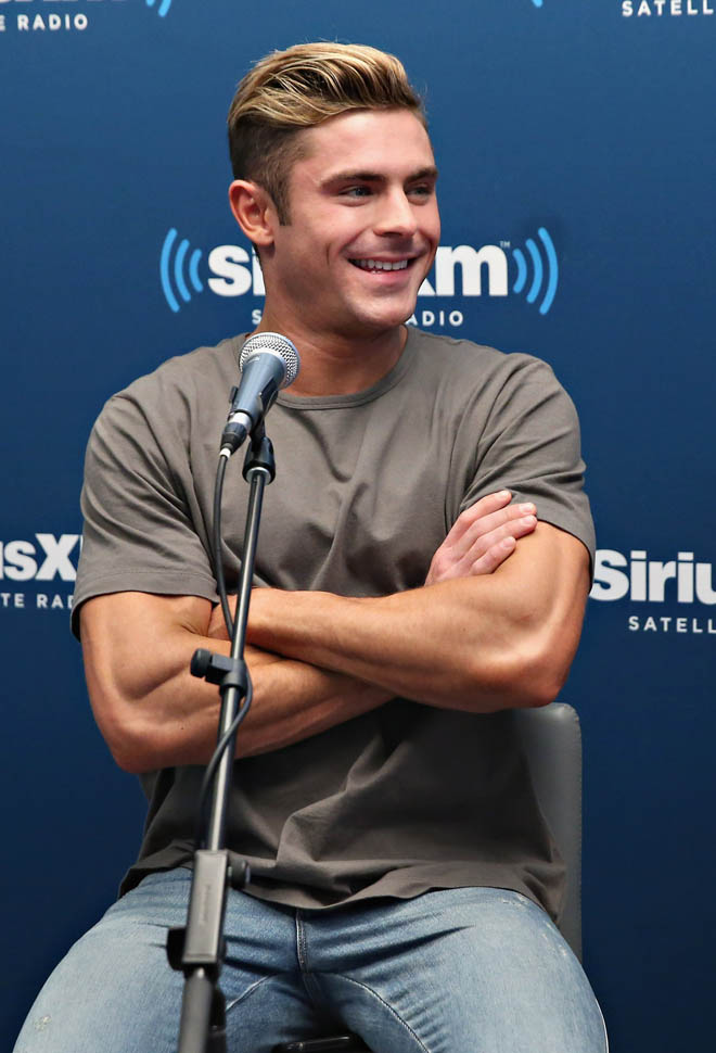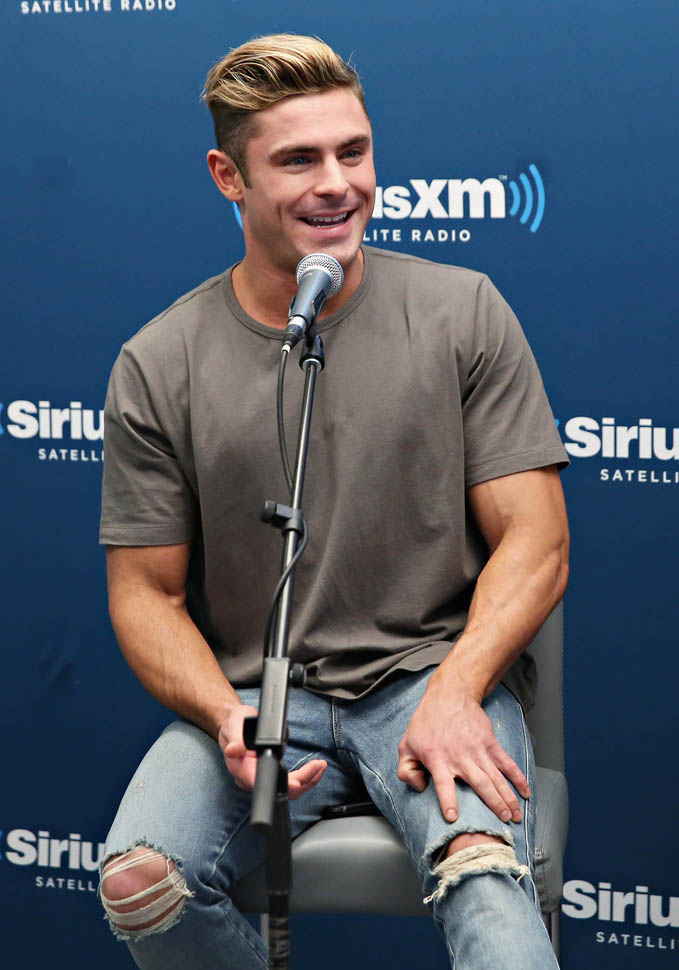 Zac Efron has been out there flexing his muscles on the press circuit this week promoting Neighbours 2. He was on The Tonight Show with Jimmy Fallon, he was on with Seth Meyers, and he was also interviewed by ELLE. As you know, I’m not a believer in Zac Efron. The blatant “bro appeal” he’s been working the last few years has been an eye-roll for me. And he’s all about that “bro appeal” with ELLE too, tell the magazine about the time a big dude stopped him and wanted to bro-shake his hand because he was such a f-cking bro in Neighbours.