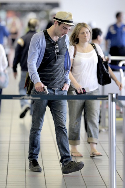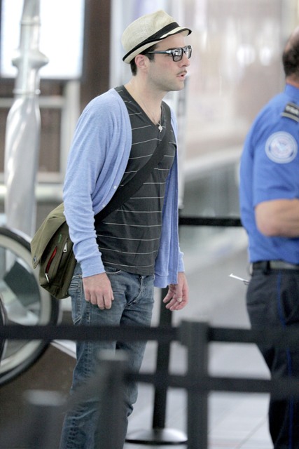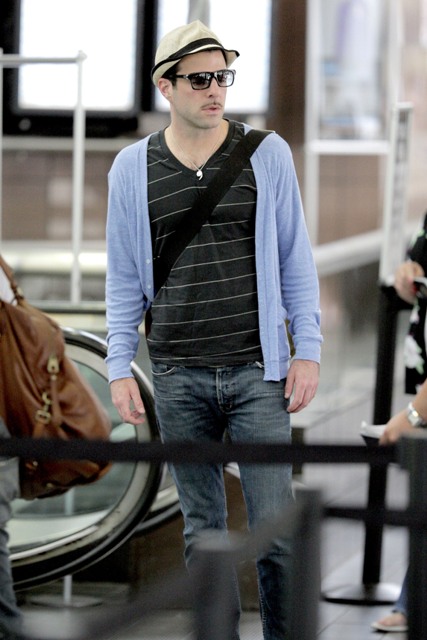 This generation’s Spock showed up at the airport this morning headed to Mexico to promote Star Trek. As you can see, he’s trying out some pervy facial hair. Is it working for you?