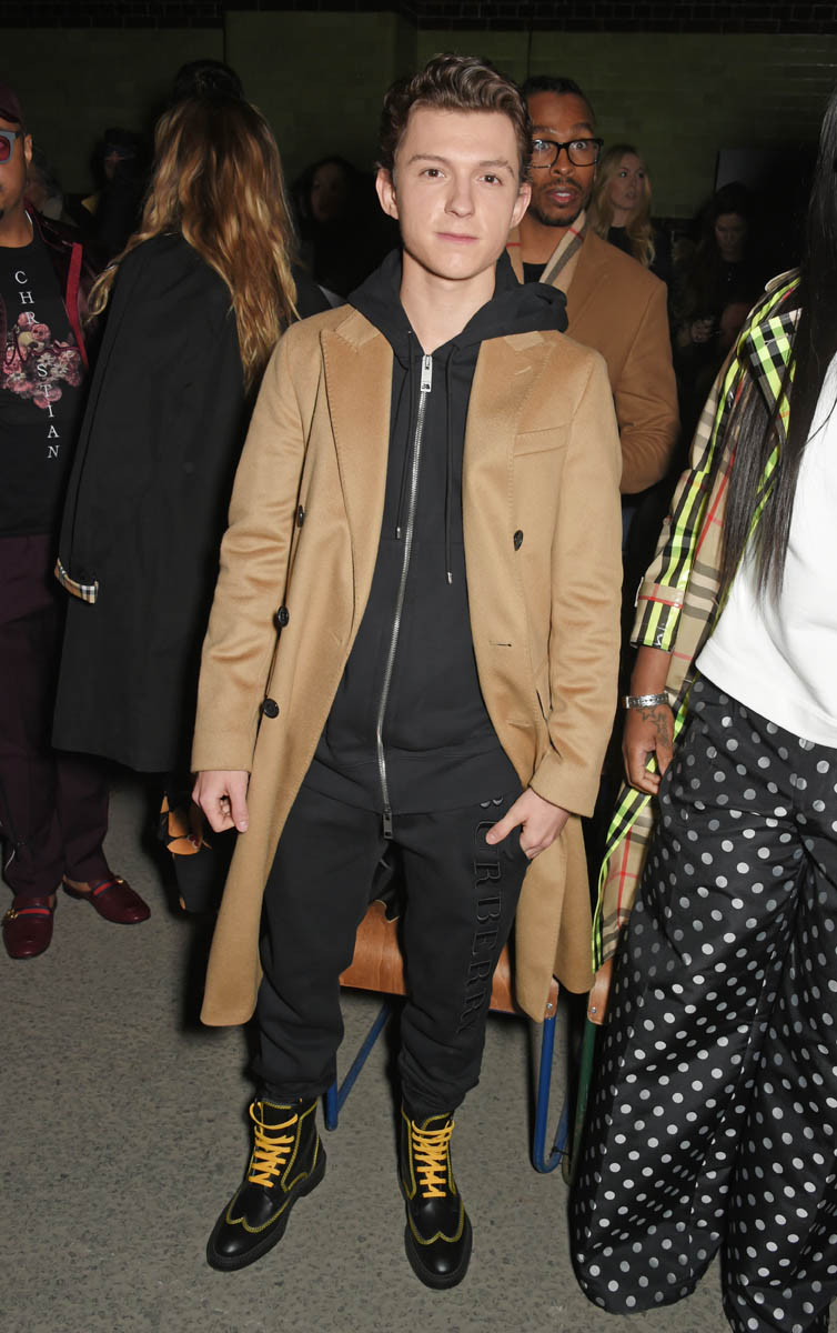 Zendaya was in London for fashion week. Tom lives in London down the street from his parents. We already know that Tom has met Zendaya’s family because Thanksgiving. A reader named Lucy emailed me an update on Tom and Zendaya because she knows how hard I stan for young love (thanks Lucy!). First, there was this sighting with a fan.