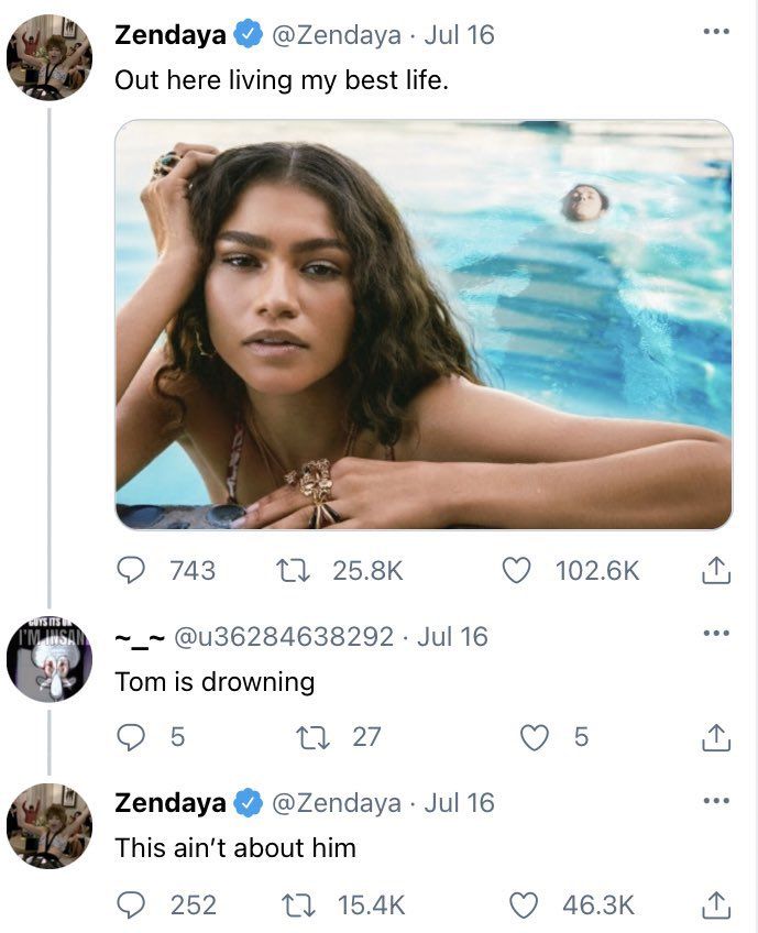 The reason for the deletion is because Tom Holland is in the shot and when people started commenting, she clapped back. “This ain’t about him”, and it’s true. For her it isn’t about him but for him, of course it’s about her – she is ZENDAYA, after all.