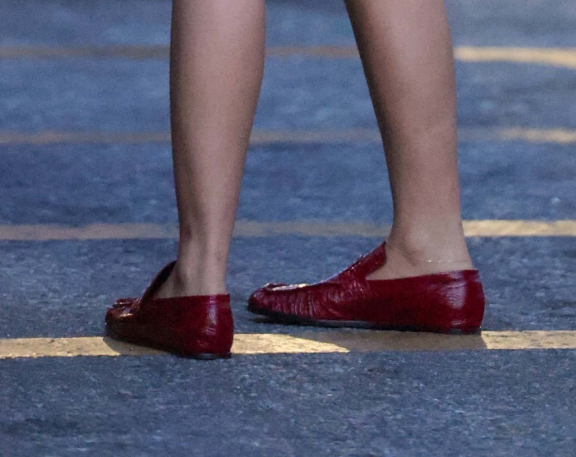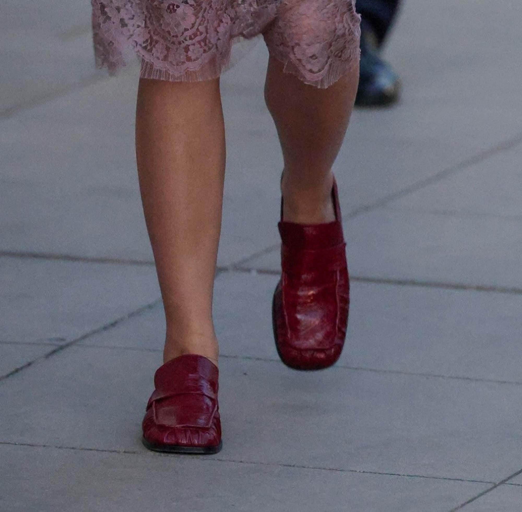 The low profile loafer on Zendaya looks, to me, lool like the Mansur Gavriel ruched loafer in oxblood. They’re gorgeous. But they’re not cheap.