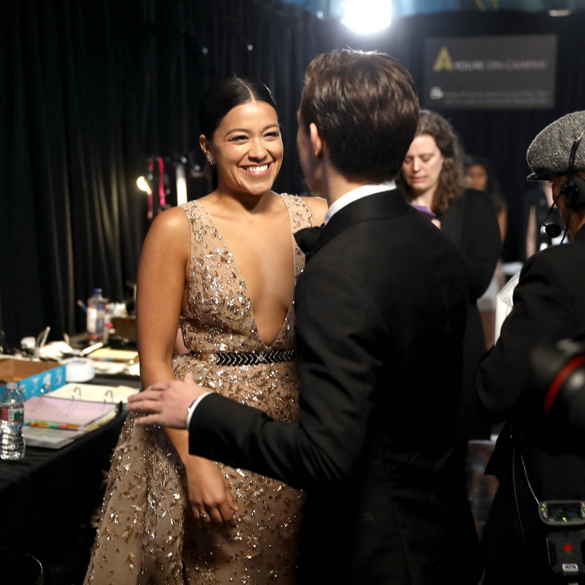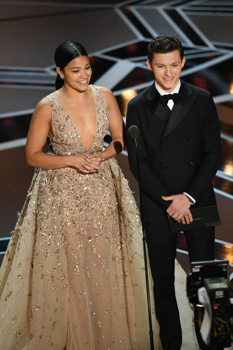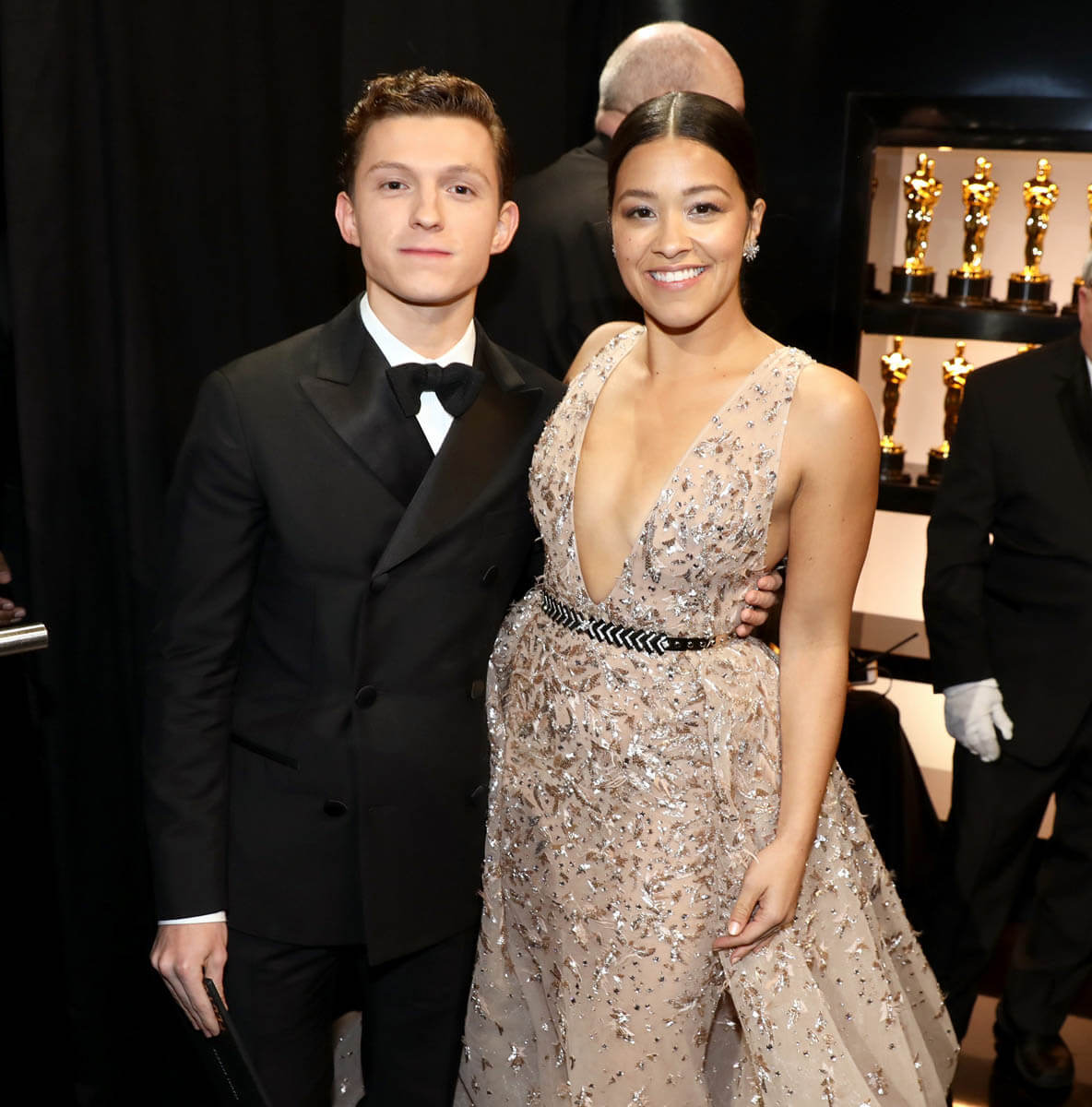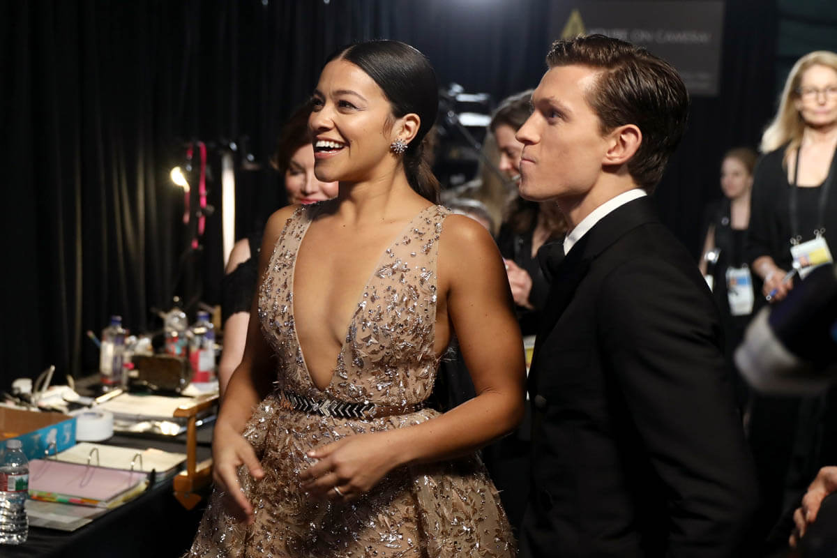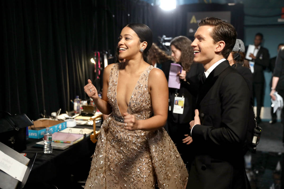 So far I can’t find any photos of Zendaya and Tom together last night. And they were really far apart on the carpet too. Believe me. I tried. I was watching from the balcony to see if they waited for each other after the press line and the photo walls. They weren’t. He presented with Gina Rodriguez though. And while we are all big fans of Gina here, and the dress wasn’t the worst, she deserves more than Zuhair Murad. Law Roach would not have put her in Zuhair Murad.