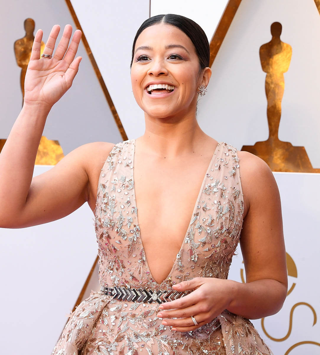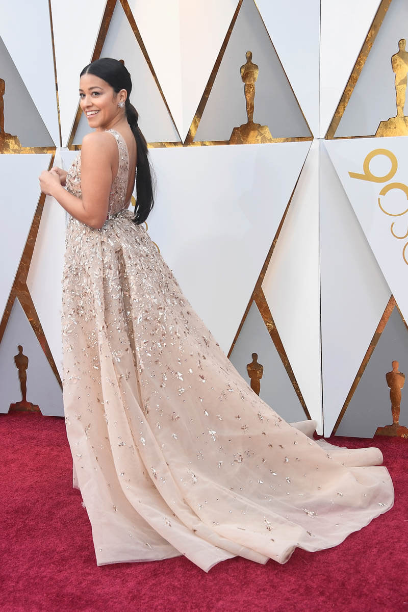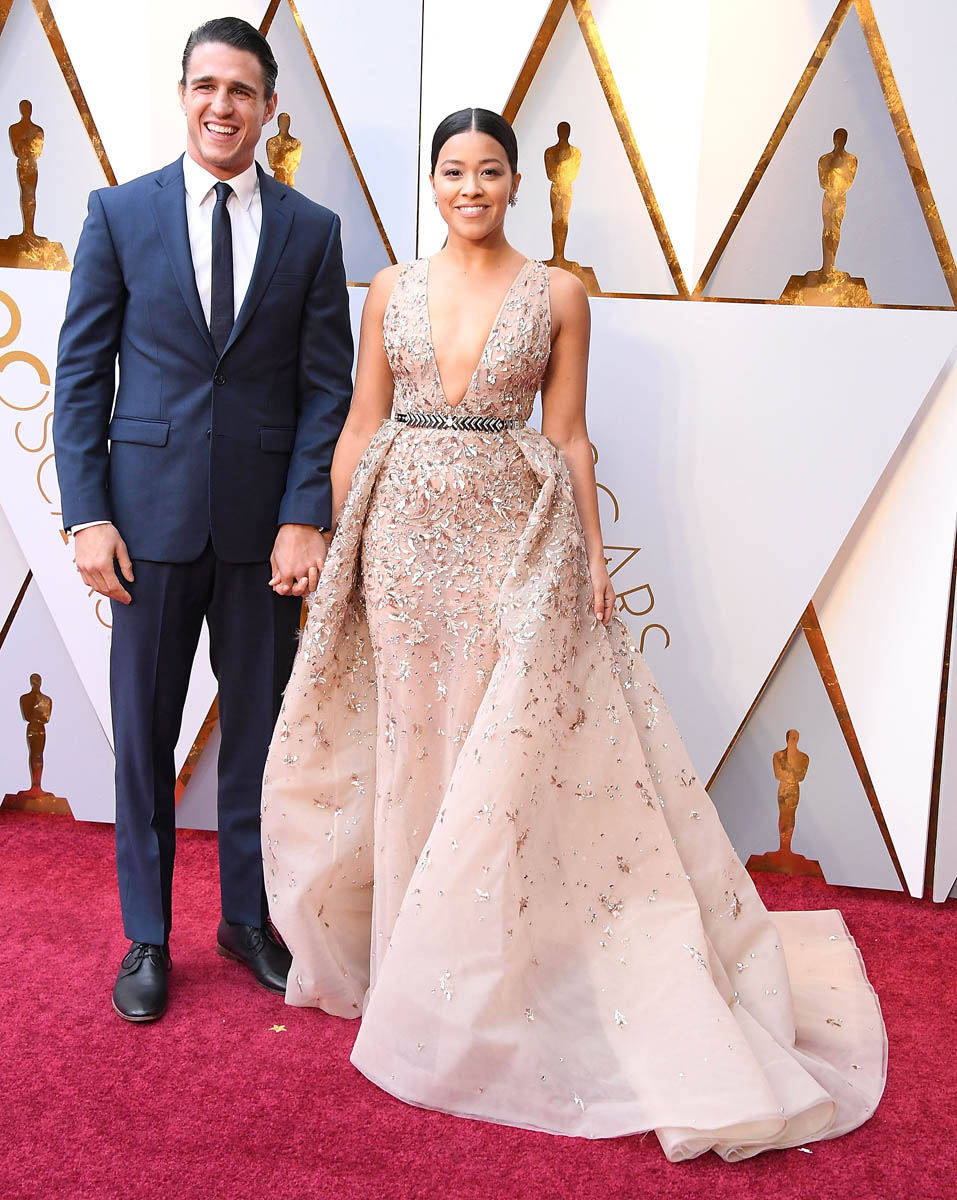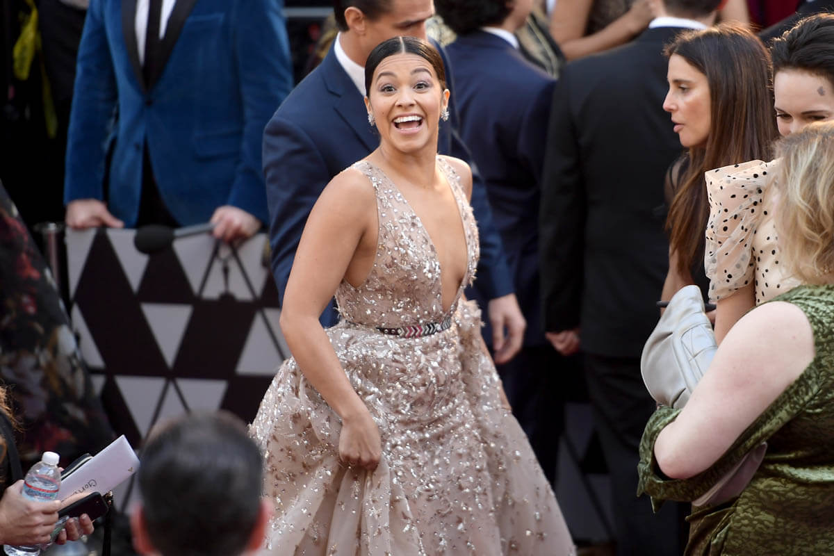 So far I can’t find any photos of Zendaya and Tom together last night. And they were really far apart on the carpet too. Believe me. I tried. I was watching from the balcony to see if they waited for each other after the press line and the photo walls. They weren’t. He presented with Gina Rodriguez though. And while we are all big fans of Gina here, and the dress wasn’t the worst, she deserves more than Zuhair Murad. Law Roach would not have put her in Zuhair Murad.