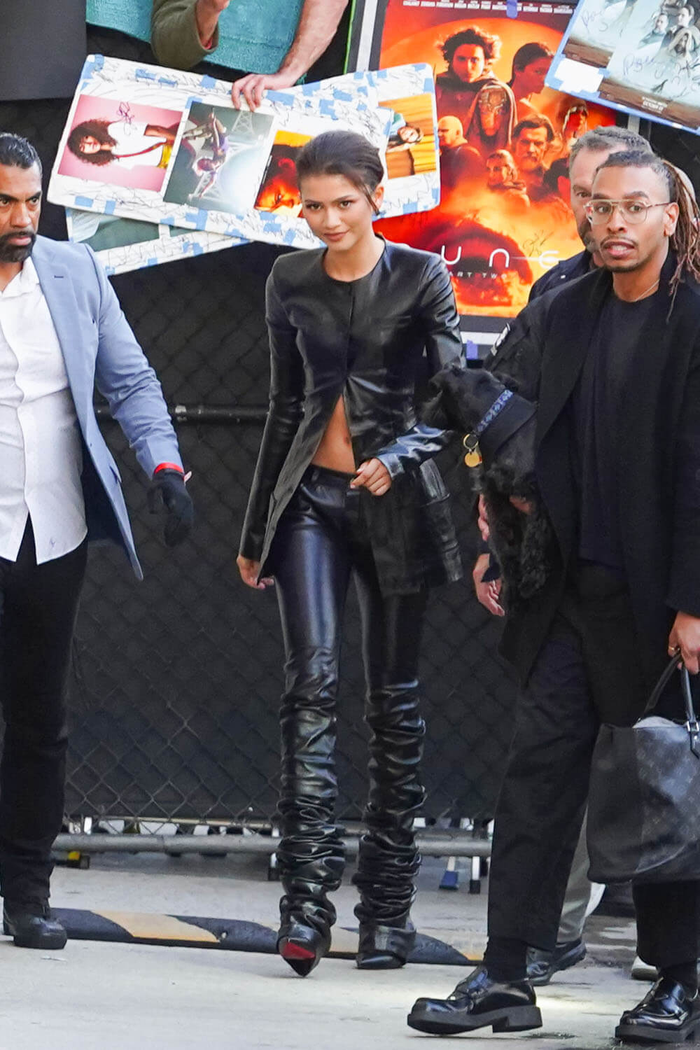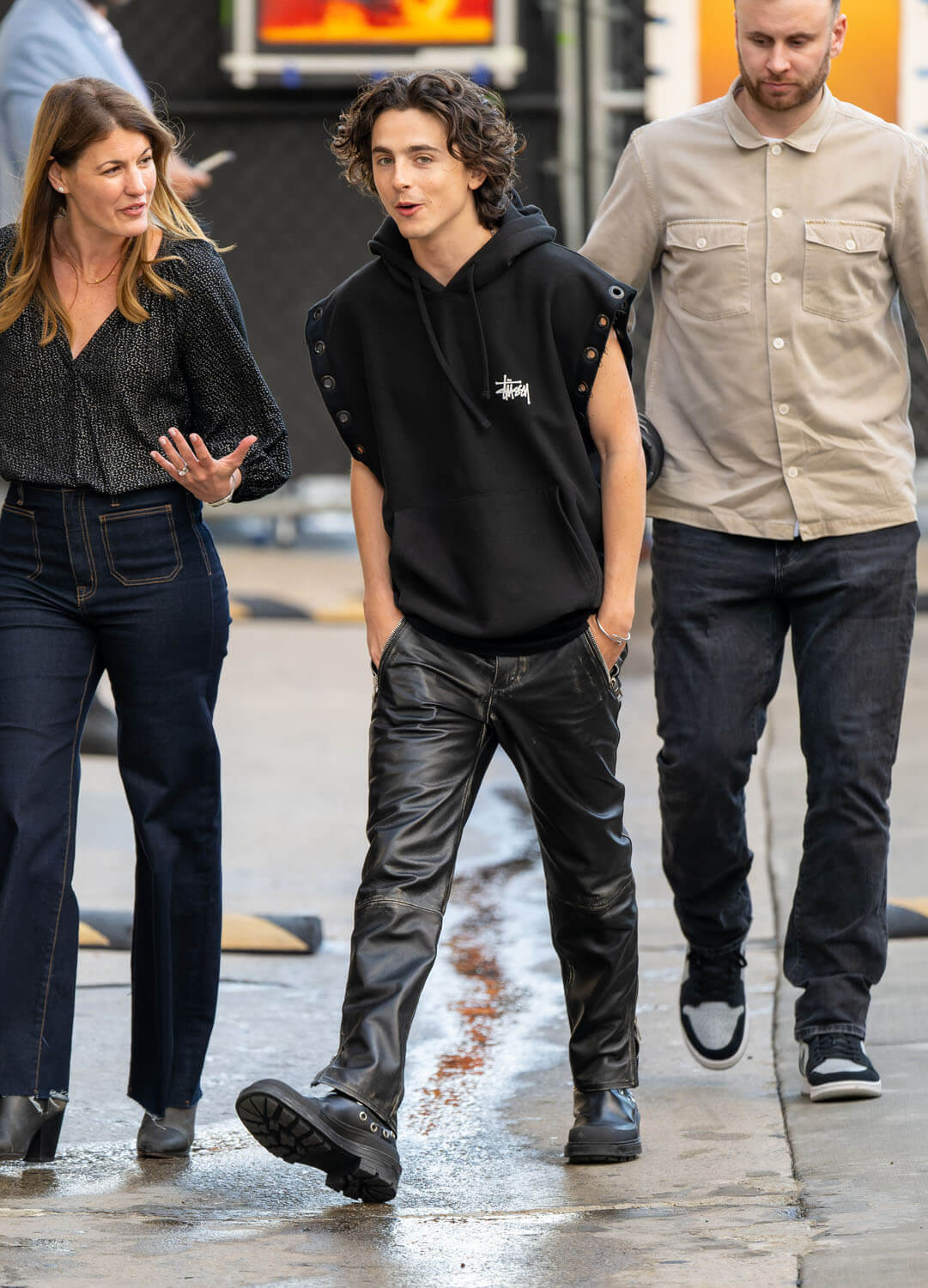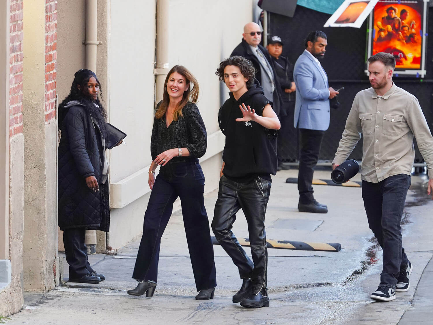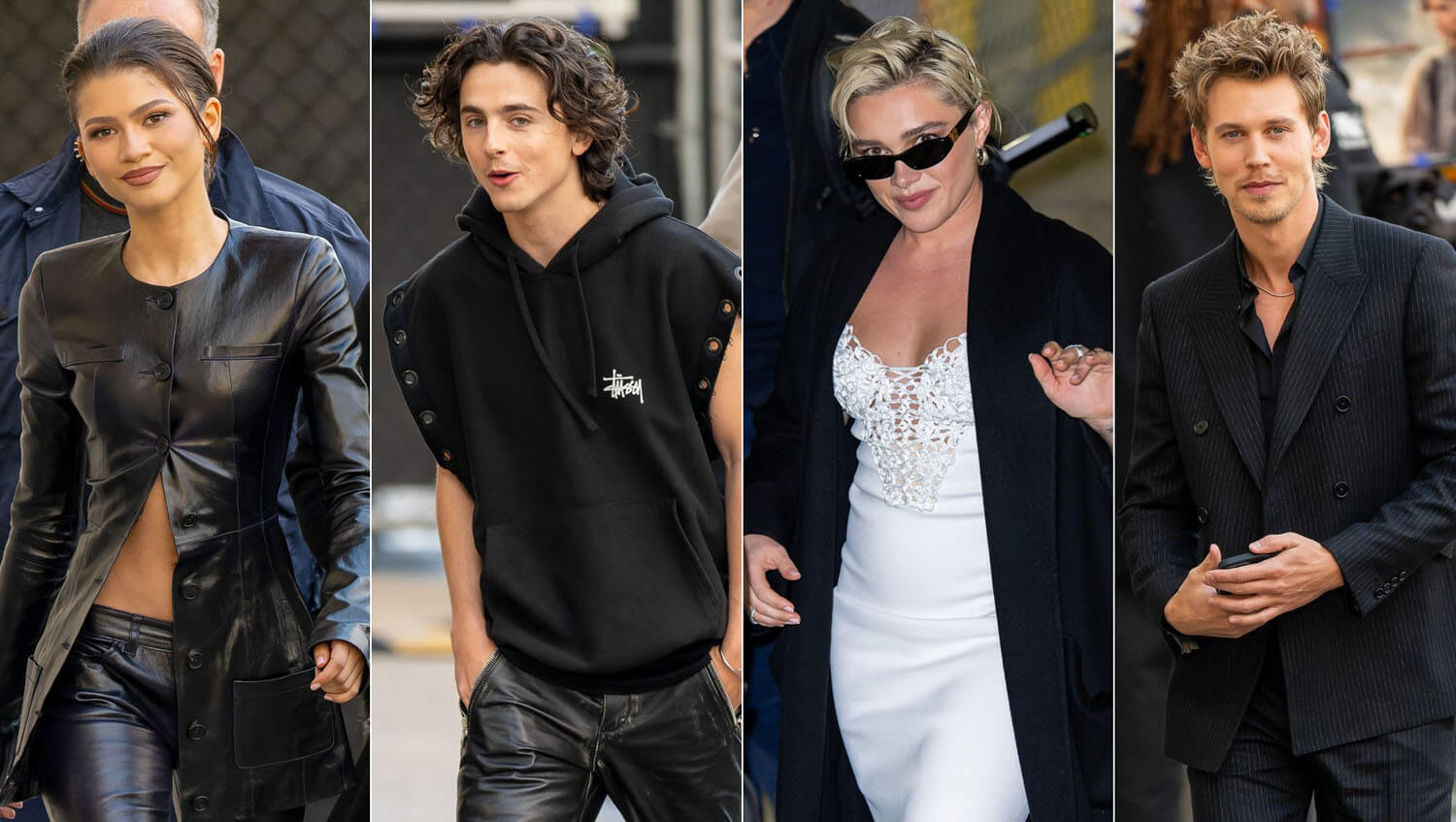 This is what people want to see which is what Kimmel got last night with the four of them showing up to talk about the movie and their friendship and their experiences on set. Flo seems to be the most relaxed, while the other three are adorably awkward and earnest. That’s another thing to watch for – whether or not they gradually loose up as the month progresses and when the exhaustion kicks in, whether or not it gets increasingly chaotic, in a fun away. These tours can be gruelling. They’re probably hitting multiple countries, several different time zones in a week, with screenings and interviews and photo shoots and photo calls and carpets along the way. Timothée just came off of one in November through December for Wonka and as extensive as that one was, the Dune: Part 2 promo will probably be even more.