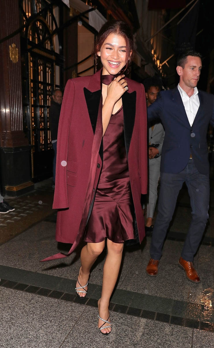Everyone thought this means she’s playing Ariel in a live-action Little Mermaid remake (would watch), but she said it’s to honor Mary Jane Watson, the Spider-Man character she is NOT playing, because Marvel and Sony are F-CKING COWARDS. Never let them off the hook for this “My name is Michelle, but call me MJ” bullsh-t. They’re trying to have it both ways—a non-white MJ, but leaving the door open for the REAL MJ to show up sometime in the future. It’s a total cop-out and they should have to answer for it constantly, all the time, with no relief. I feel like Zendaya’s red hair is low key shade at Marvel and Sony (Kevin Feige is on the press tour with them and looking at that red hair every day and being reminded of What Could Have Been).