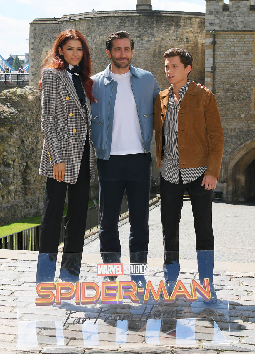 Everyone’s favorite young maybe-couple Hollywood, Tom Holland and Zendaya, are out and about, promoting Spider-Man: Far From Home. Jake Gyllenhaal is tagging along, making him the world’s handsomest third wheel. The three of them together are Zendallandenhaal, which sounds like a medieval province in Sweden. They’re doing a full press roll-out for Far From Home, but I feel like the run up to this movie has been a little muted? Not that I expect it to be anything other than a gargantuan hit. It’s more like, we’ve all already agreed to go see this and don’t really need the reminders so the press feels a little like we’re being shyly waved at from the corner, and not screamed at full in the face, as is usually the case with superhero movies. Of course everyone is curious to see how the world is doing after Endgame, Far From Home probably doesn’t need any more promotion than that. (Personally, I will be checking to see if there are any Black Widow memorials set up anywhere, or if everyone already forgot her and are chalking it up to a Tony Stark single-handed victory, as all the ads make it seem. #JusticeForNat)