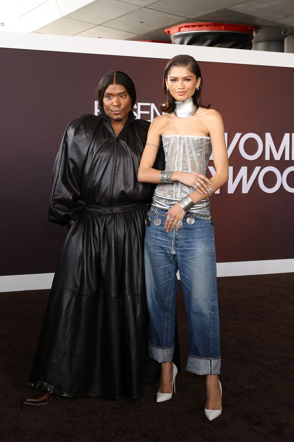 Zendaya went outside AGAIN for it, turning up in jeans, a corset, a metal choker, and very pointy shoes. Something about this look is giving me Y2K vibes, maybe the pointy shoes and jeans. Please, please, do not bring back 2000s fashion. It was so awful. Resist the bumster!