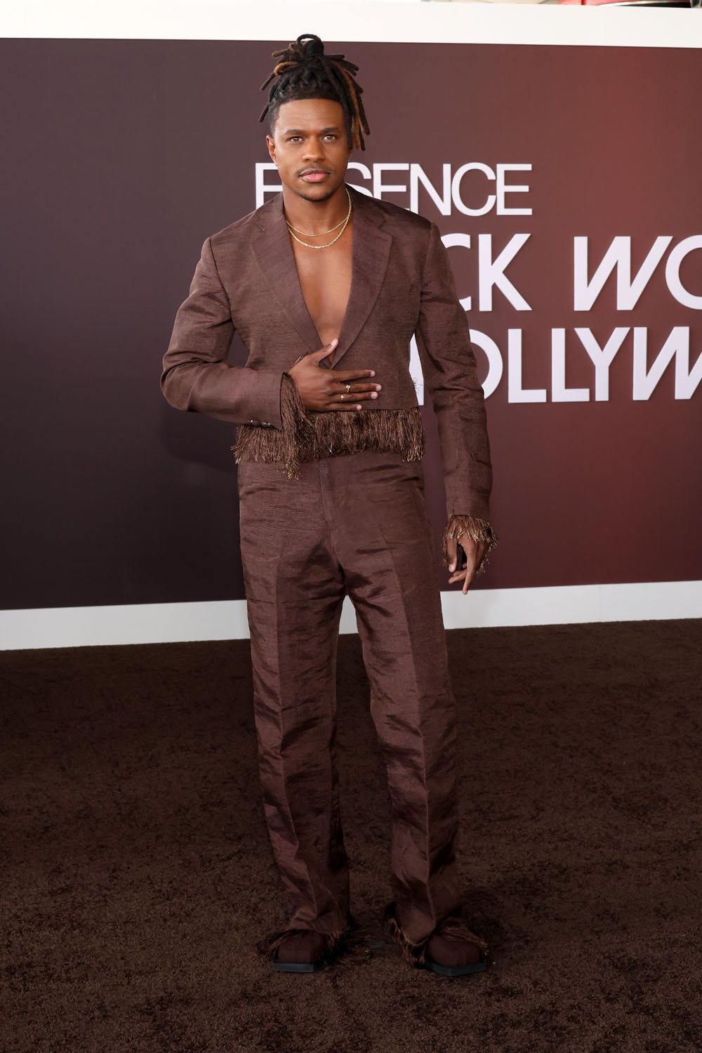 Also at the event were Halle and Chloe Bailey, Jeremy Pope, Leslie Jones, Shameik Moore, Andra Day, Teyonah Parris, Normani, Letitia Wright, and Oscar nominee Danielle Brooks. I love Danielle’s gown with the gold headpiece, and Teyonah Parris’s dress decorated with gold seashells is very fun.
