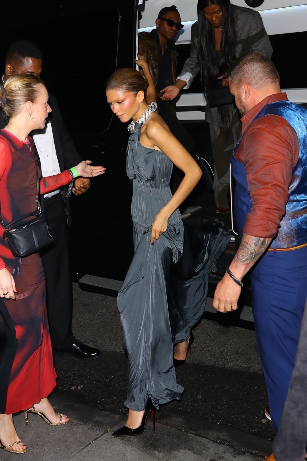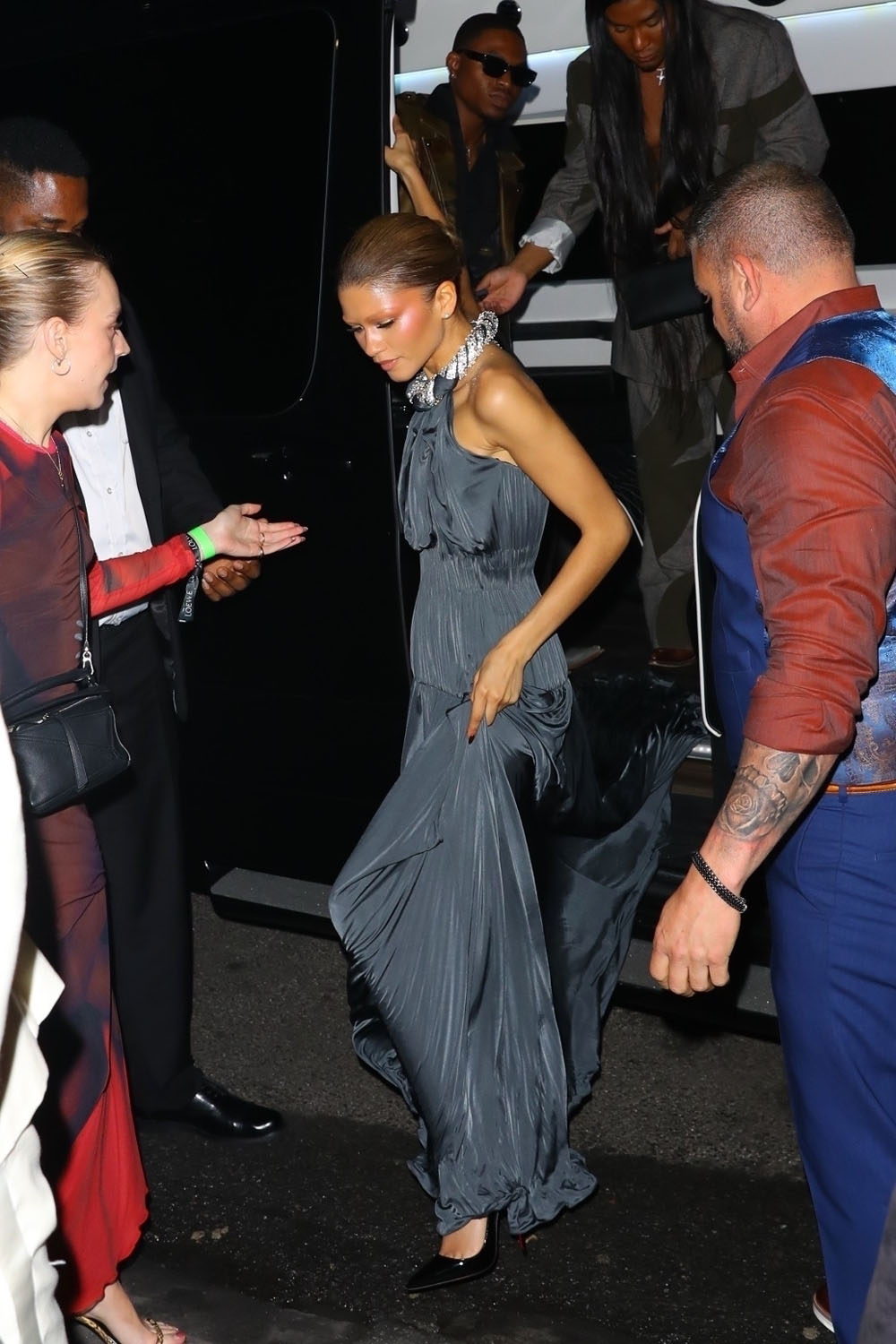 By now you’ve seen the two looks Zendaya wore at the Met Gala – both John Galliano, one custom and one archival. There were actually two more looks that night. Inside the party, for her co-chairing duties, Zendaya actually changed into a more manageable dress to perform her duties.