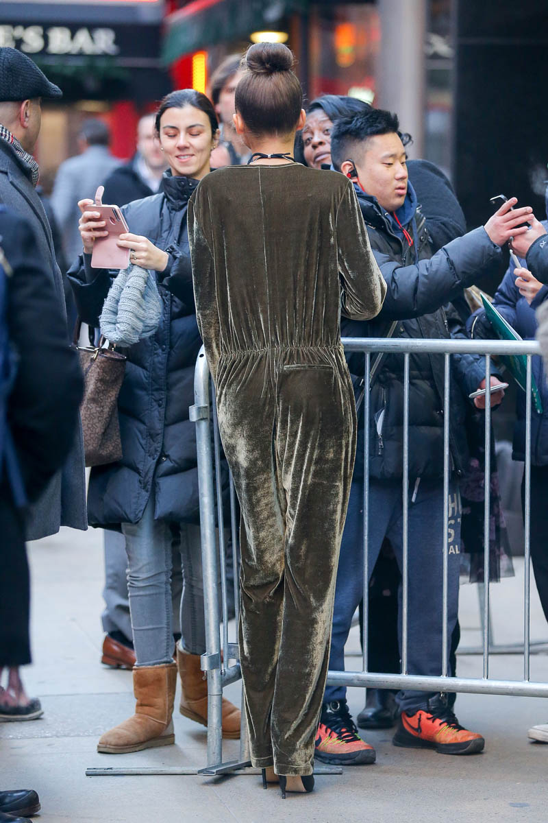 So much velvet this season. I love how it looks here in olive-ish green. Imagine how comfortable it must be to wear this. How soft it would feel on your skin. Definitely makes up for what a pain in the ass it is to pee.