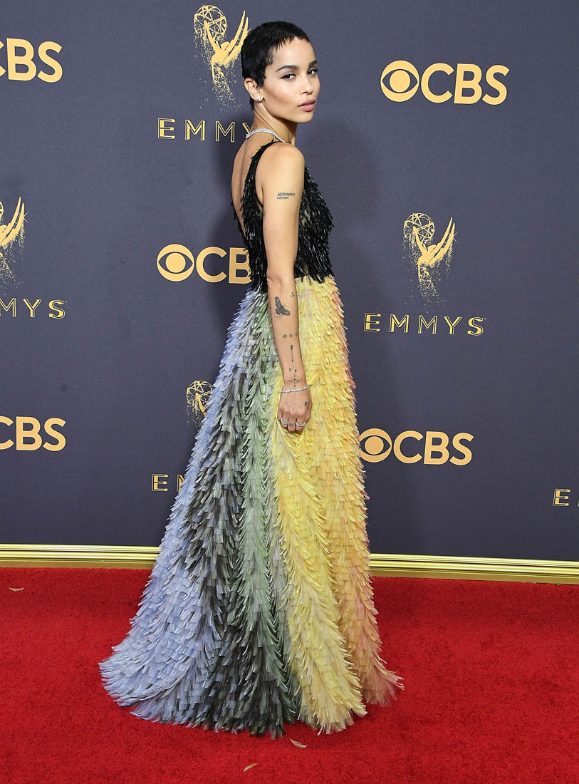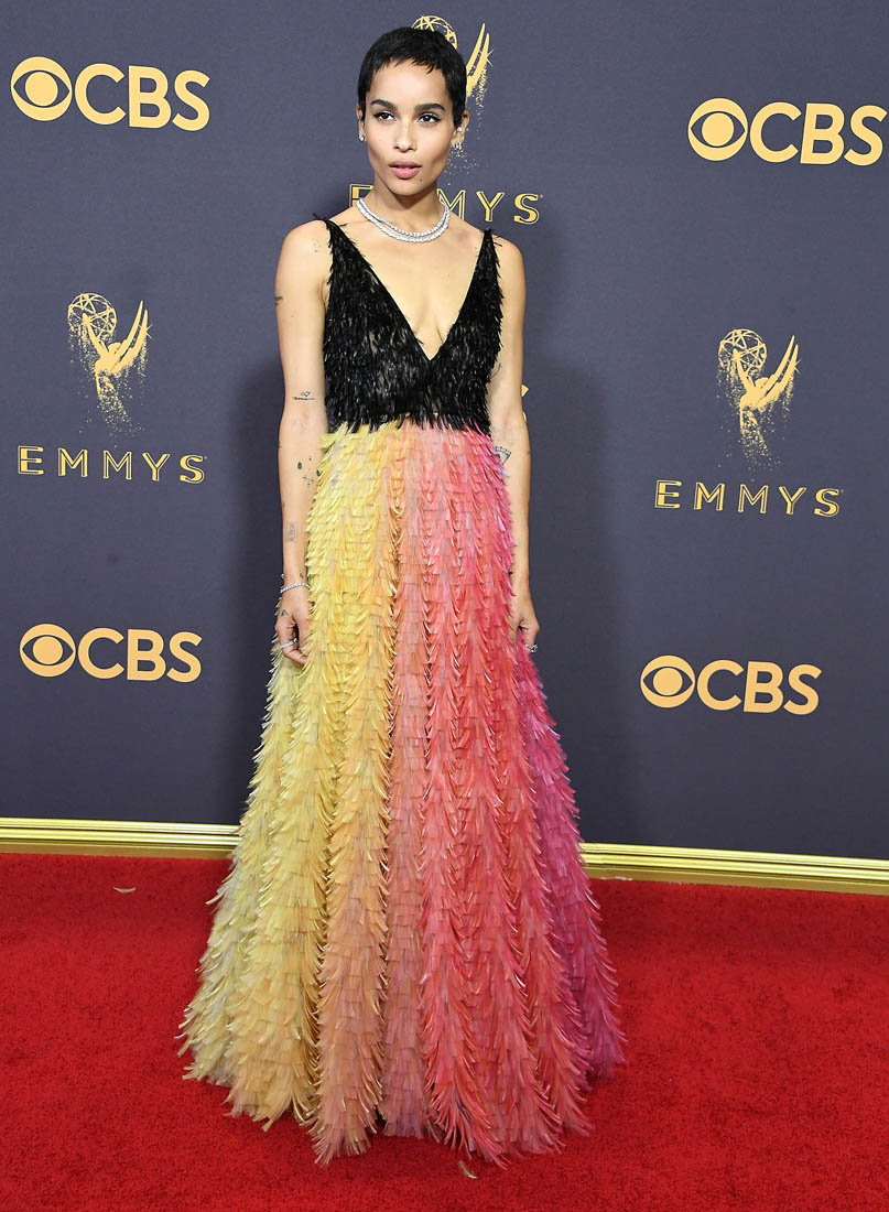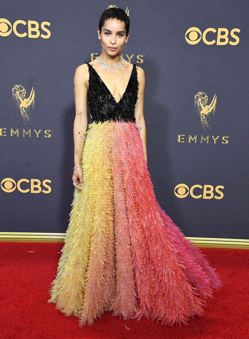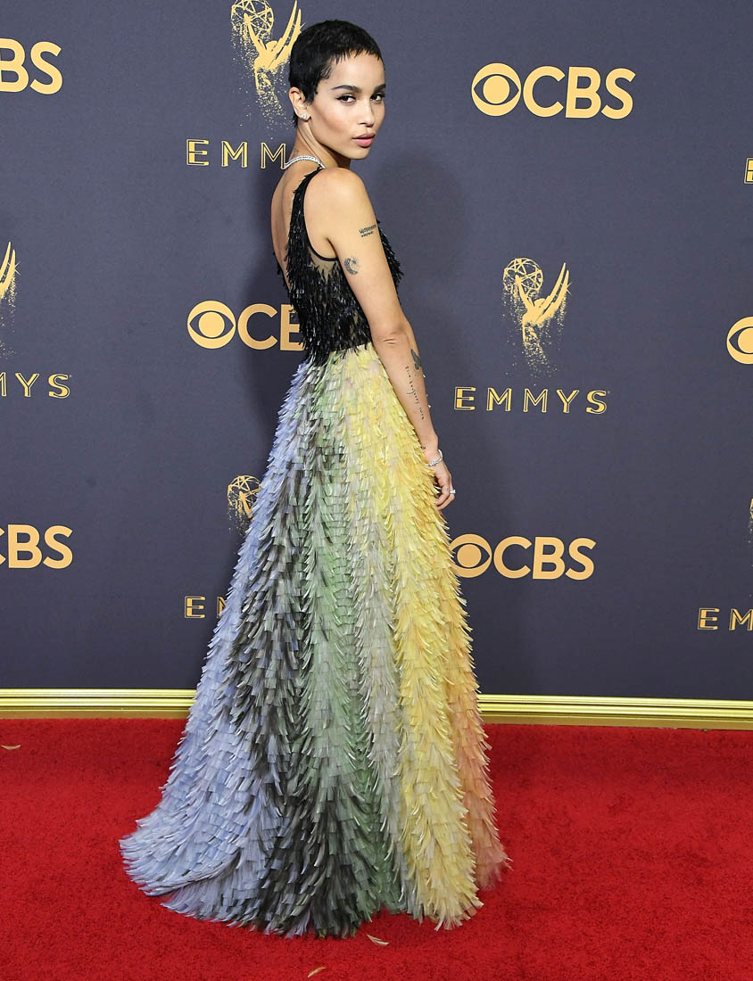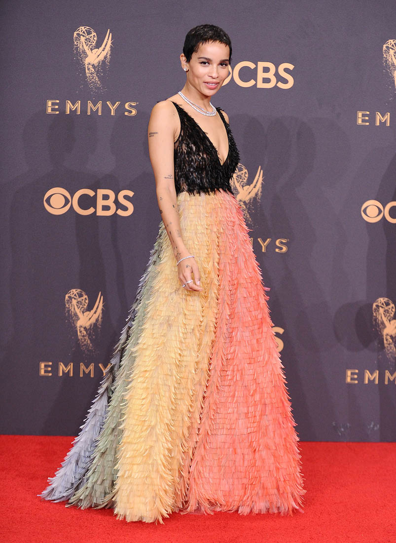 I love colour, especially in clothes. I am a sucker for a rainbow stripe, I rarely go for a black dress, and I inevitably wind up whining/wiggling my way out of writing about certain people during our awards show wraps because I haaaate nude/neutral dresses. This Zoe Kravitz Dior Couture dress should have hit me right in the dopamine.