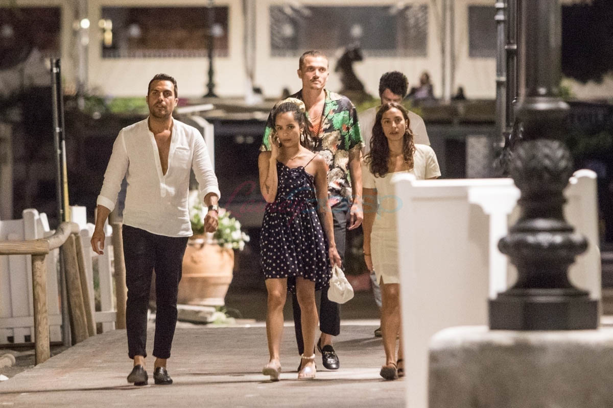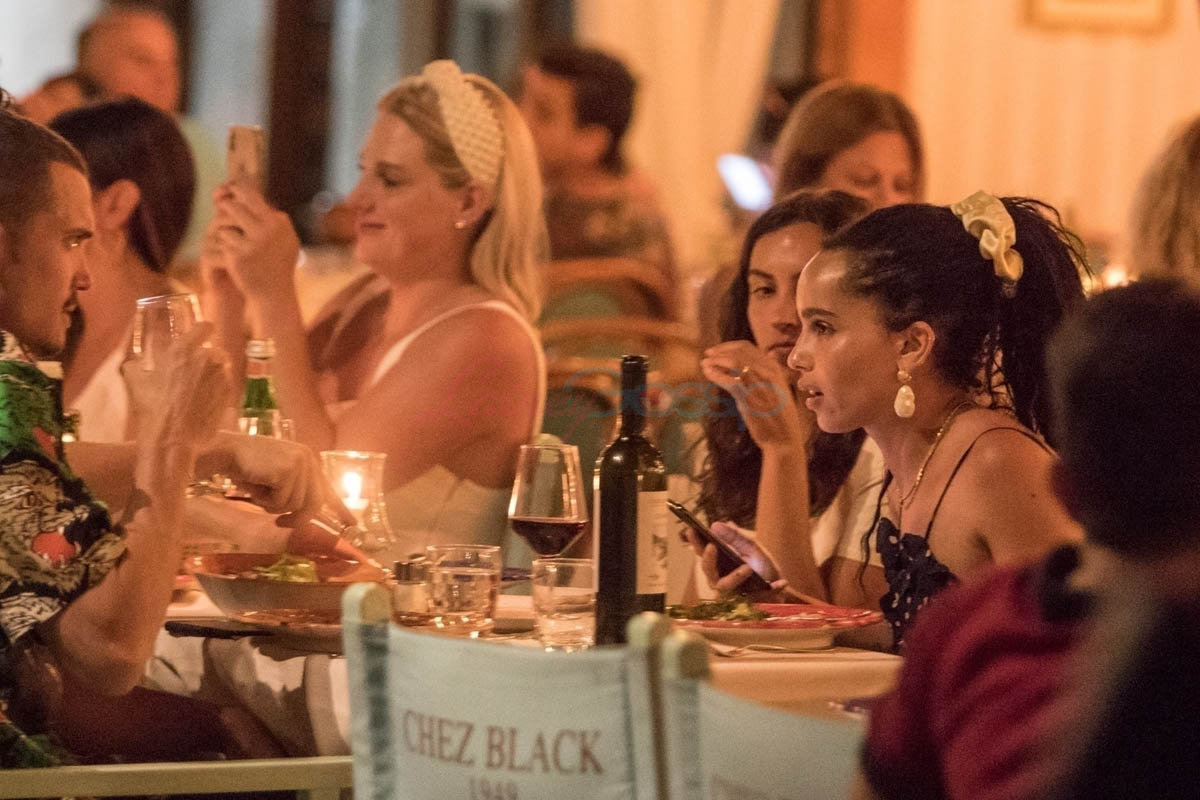 I put a question mark there because I’m not entirely sure if this is their “official” honeymoon – here are Zoe Kravitz and Karl Glusman, a week after their wedding in Paris, in Positano having dinner with friends last night. According to E! News, Zoe was showing wedding photos to her friends on her phone. I want to see too! It’s offside fan entitlement though, I know.