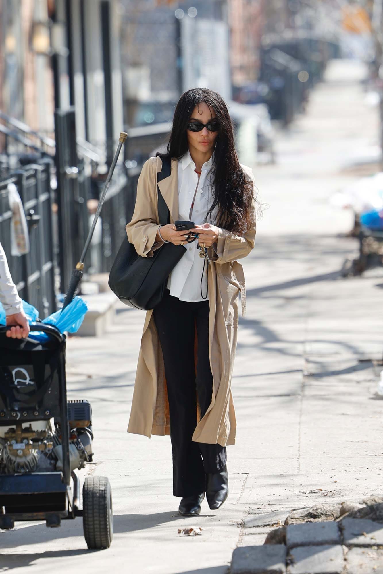 Harry Styles is hosting Saturday Night Live this weekend. Zoë Kravitz lives in New York, will she turn up at Studio 8H with Harry? Zoë was out in Brooklyn yesterday in a great trench coat. This is perfect spring layering. You can never be dressed right in spring, but a good trench gets you to a lot of places in this f-ckass weather yoyo we’re in. Bonus points if it’s waterproof to get you through impromptu downpours.