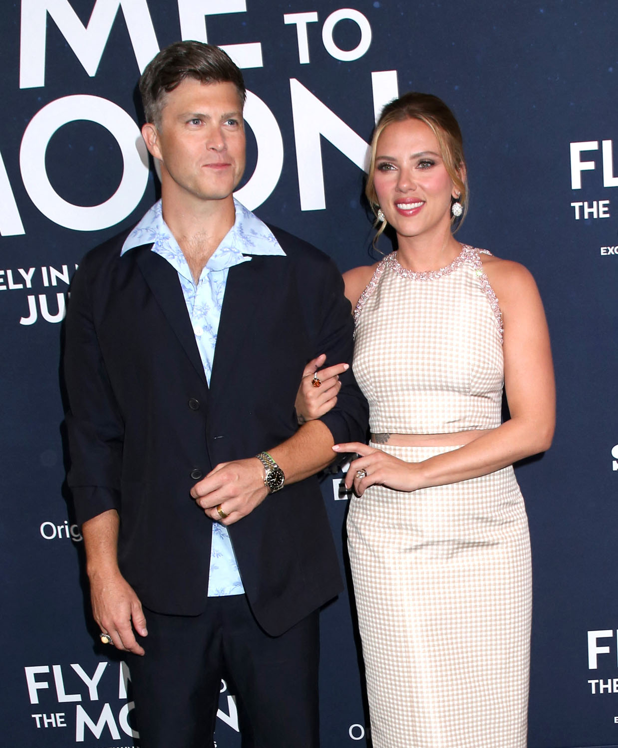 Anyway, here’s Zoë last night at the Fly Me to the Moon after party after the premiere. She did not walk the carpet with Channing Tatum but Colin Jost did pose with Scarlett Johansson. This is not the best look, on Scarjo or Colin. Her skirt fits weird, bunchy and crunchy, right? And he is not cool enough to be wearing his lapels like that.
