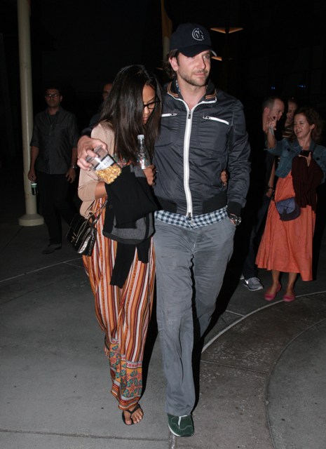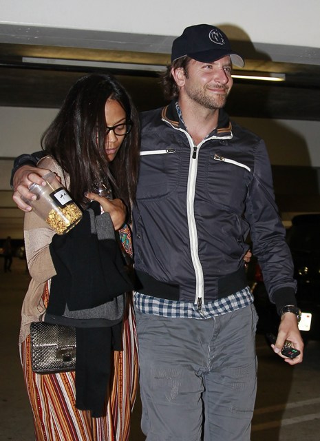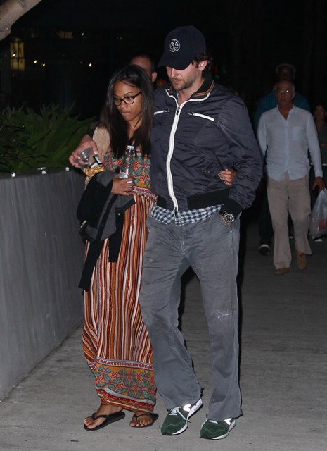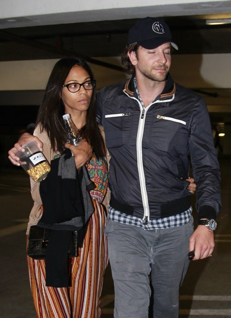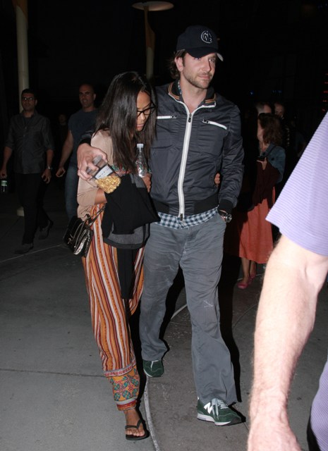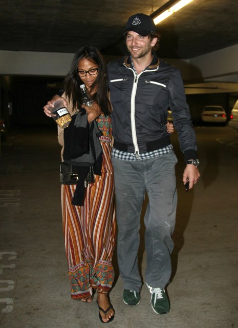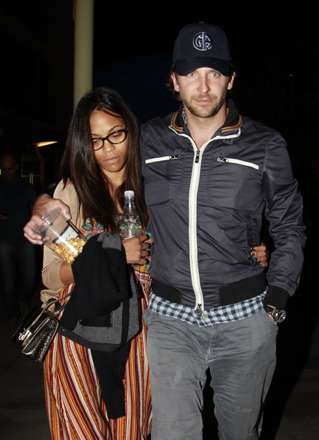 Is it because they’ve done a good job keeping it undercover, or is it because I, you, we don’t give a sh-t? Still, I appreciate that they’re not looking for a dumpster to jump into here. Or running in opposite directions. Or throwing up middle fingers. Zoe Saldana and Bradley Cooper went to the movies. The paps were there on their way out. He had his arm protectively around her and did not remove it, even though it was a money shot.